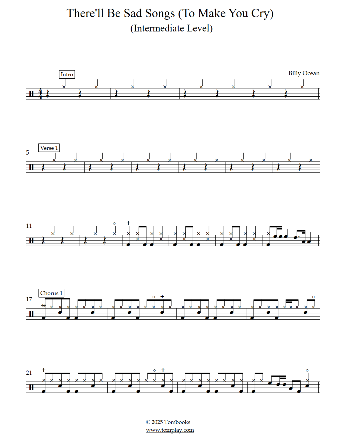 Téléchargez la partition Batterie There'll Be Sad Songs (To Make You Cry) (niveau interméd…