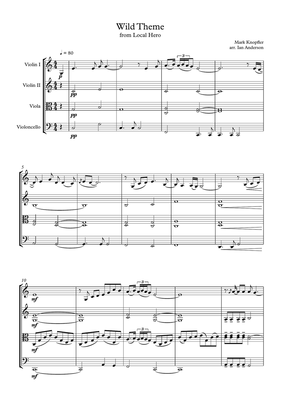 String Quartet Cello,String Quartet,Viola,Violin - Level 4 - Digital Download SKU: A0.1429497 By Mark Knopfler. By Mark Knopfler. Arranged by Emily Rockers Bowman. 20th Century,Chamber,Film/TV,Pop,Wedding. 8 pages. Emily Rockers Bowman #1010193. Published by Emily Rockers Bowman (A0.1429497). Arrangement includes full score and parts for String Quartet - 2 violins, 1 viola, and 1 cello. If you use this arrangement and record, please tag us on social @beausonstrings.
