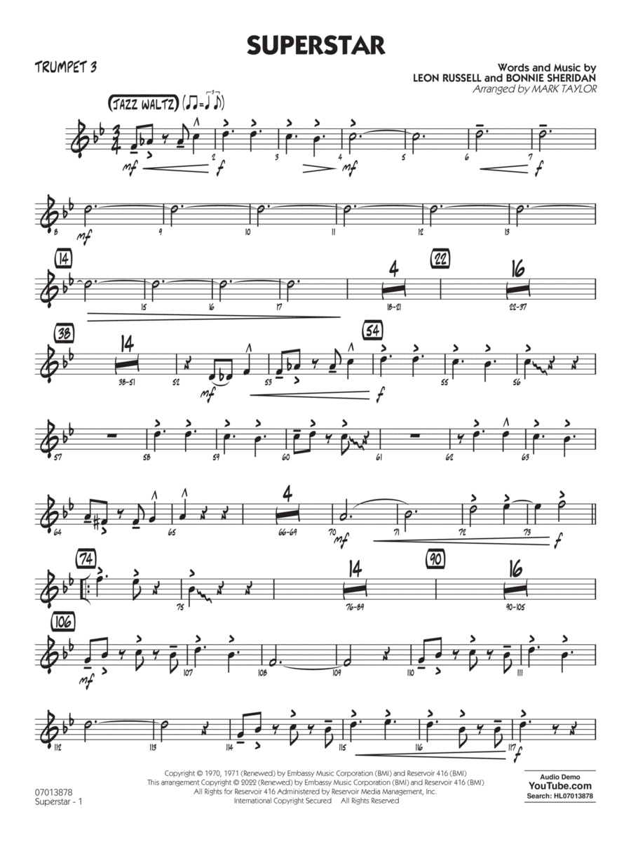 Superstar (arr. Mark Taylor) - Trumpet 3