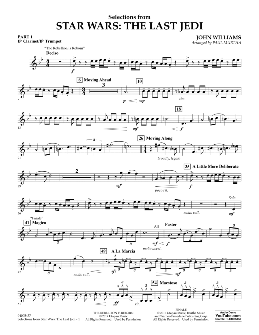 Selections from Star Wars: The Last Jedi - Pt.1 - Bb Clarinet/Bb Trumpet