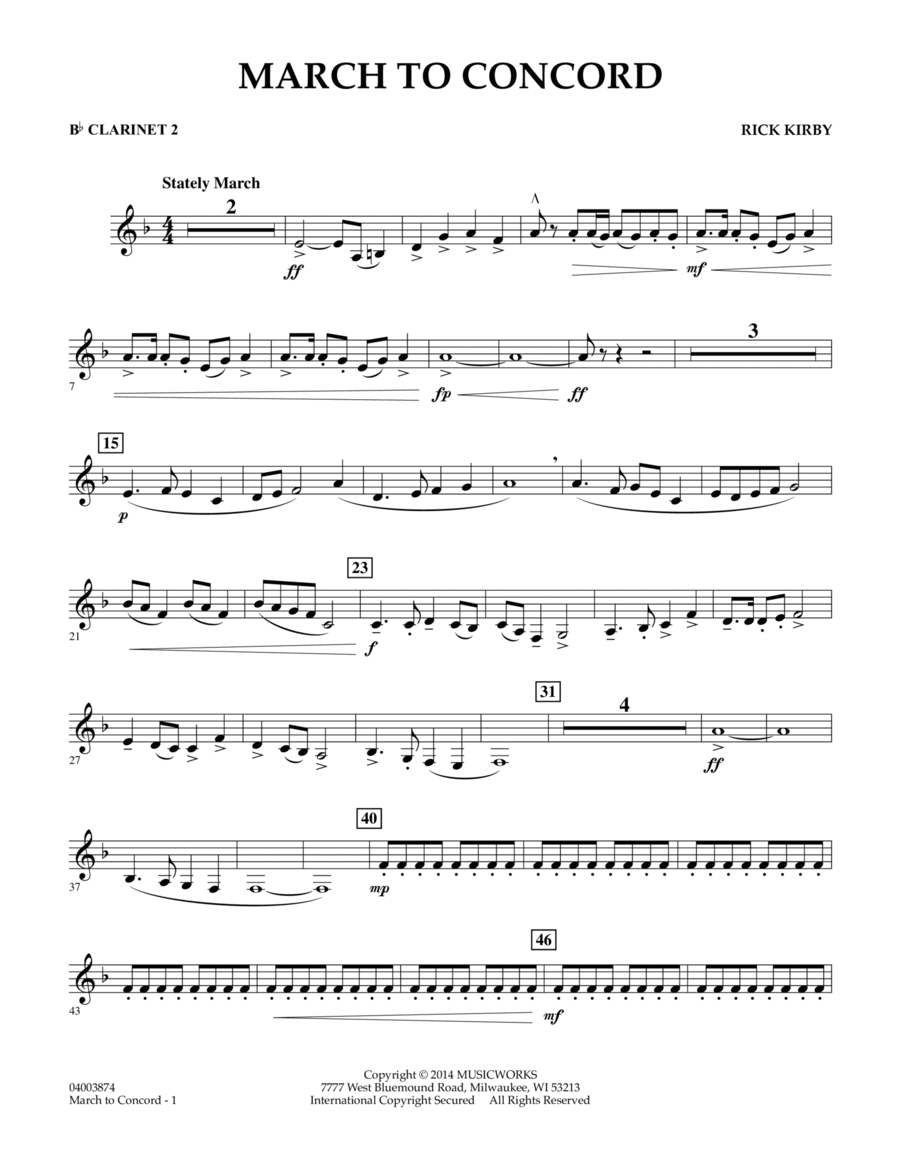 Concert band Bb Clarinet 2 - Level 3 - Digital Download SKU: HX.295253 Composed by Rick Kirby. American,Concert. Individual instrument part. 3 pages. Hal Leonard - Digital #0. Published by Hal Leonard - Digital (HX.295253).