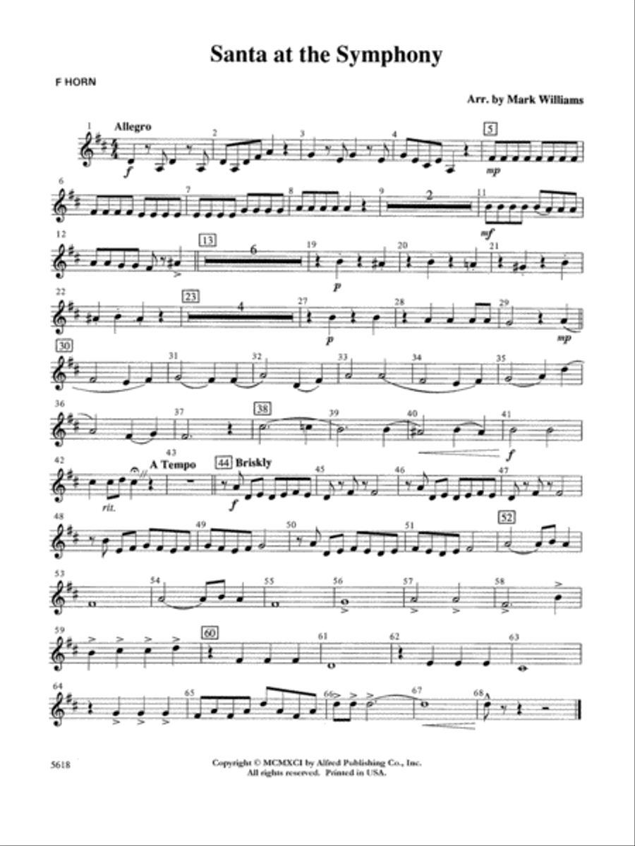 Full Orchestra - Digital Download SKU: AX.00-PC-0015676_H1 1st F Horn. Composed by Haven Gillespie, John Frederick Coots, Kim Gannon, Steve Nelson, and Walter Kent. Instructional. Part. 2 pages. Alfred Music - Digital Sheet Music #00-PC-0015676_H1. Published by Alfred Music - Digital Sheet Music (AX.00-PC-0015676_H1). UPC: 038081302287.Holiday classics come to life in this orchestral version of some of the most familiar and enduring popular songs of the Christmas season. Featuring I'll Be Home for Christmas, Have Yourself a Merry Little Christmas, Santa Claus Is Coming to Town, and Frosty the Snowman. Audiences, young and old, will delight in recapturing the memories of this very special time of year. This title is available in SmartMusic.