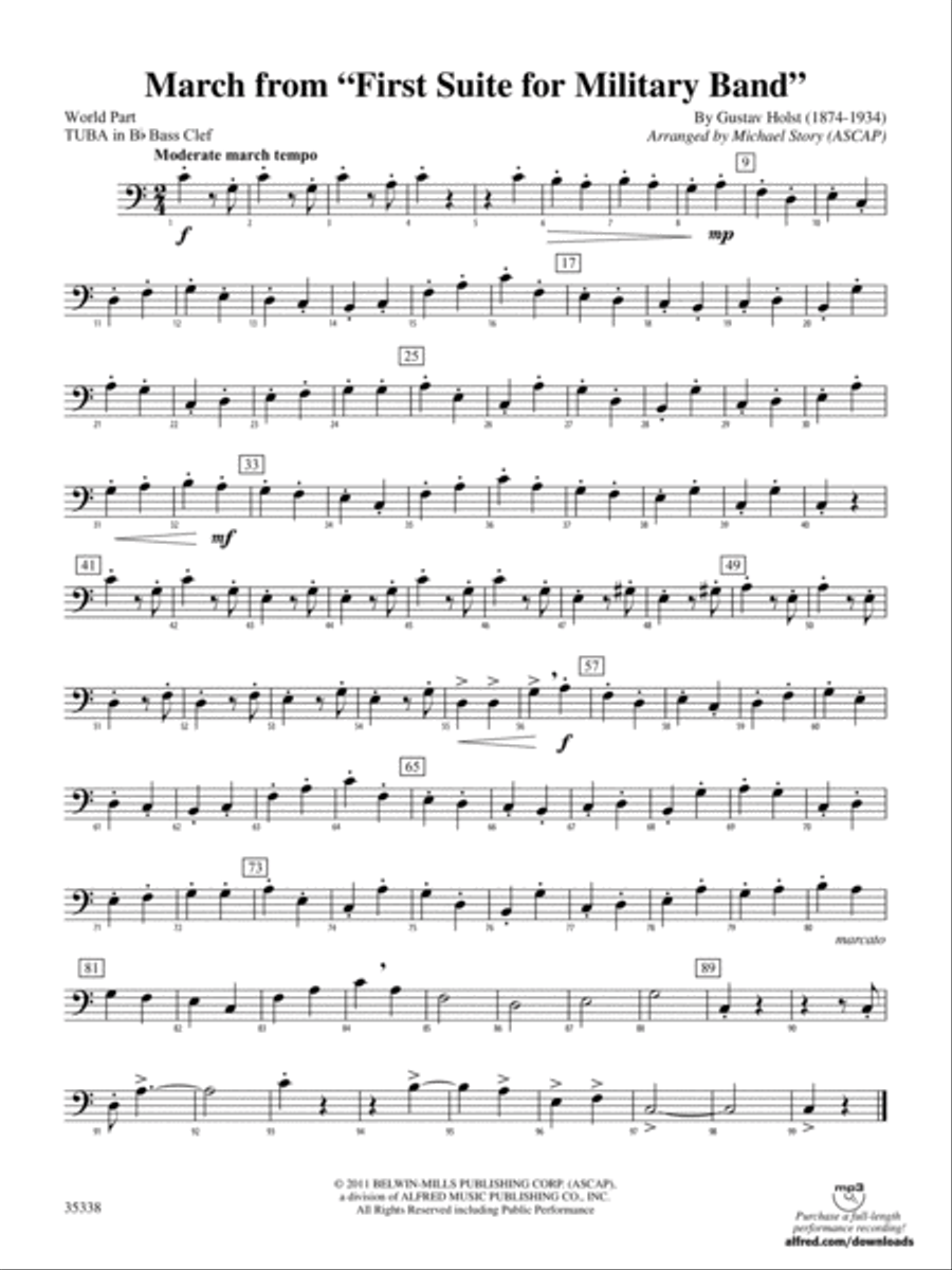 Full Orchestra - Digital Download SKU: AX.00-PC-0014470_TB1 Tuba. Composed by Gustav Holst. Arranged by Douglas E. Wagner. Classical. Part. 2 pages. Alfred Music - Digital Sheet Music #00-PC-0014470_TB1. Published by Alfred Music - Digital Sheet Music (AX.00-PC-0014470_TB1). UPC: 038081376943.Written as a sequel to the highly successful A Vaughan Williams Christmas, this artfully crafted medley brings to the stage several of Holst's best known and loved Christmas titles, including In the Bleak Midwinter, Lullay My Liking, and Christmas Day. The rich scoring creates a satisfying musical experience, with care taken to insure that all technical demands are well within the parameters at this level. The arrangement may be played by strings alone, or with the addition of any combination of wind and/or percussion parts.Closer.