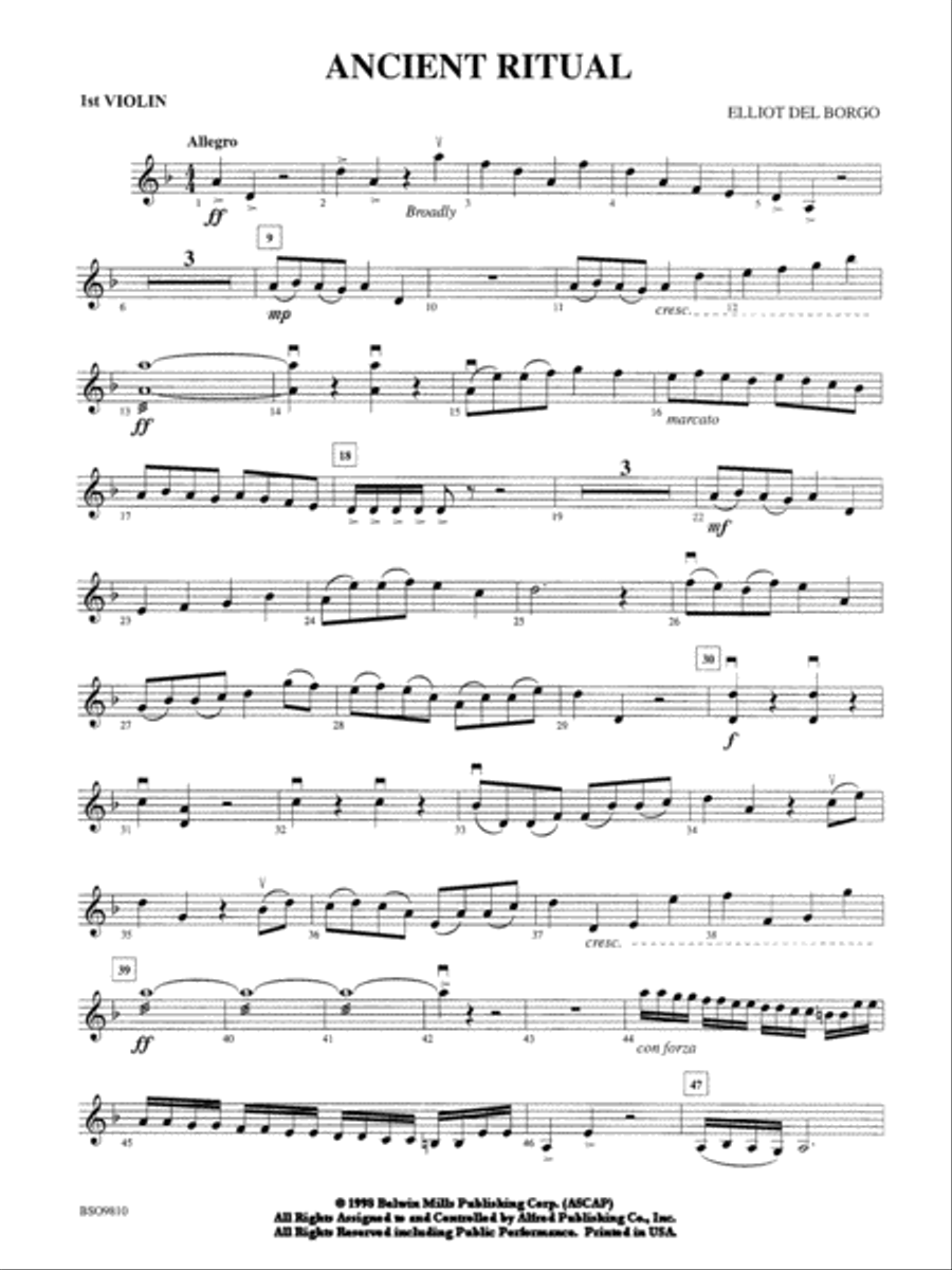 Full Orchestra - Digital Download SKU: AX.00-PC-0014253_VN2 2nd Violin. Composed by Elliot Del Borgo. Instructional. Part. 2 pages. Alfred Music - Digital Sheet Music #00-PC-0014253_VN2. Published by Alfred Music - Digital Sheet Music (AX.00-PC-0014253_VN2). UPC: 038081152028.All of the power and rhythmic energy that you've come to associate with Elliot Del Borgo's work is evident in this new composition for full orchestra. Scored to be playable by strings alone or with the addition of any or all of the winds and percussion, this selection provides the optimum in flexibility and is performable by groups with reduced instrumentation and/or limited rehearsal time.List/syllabus: TX UIL PML: Orch, Strings, Guitar.