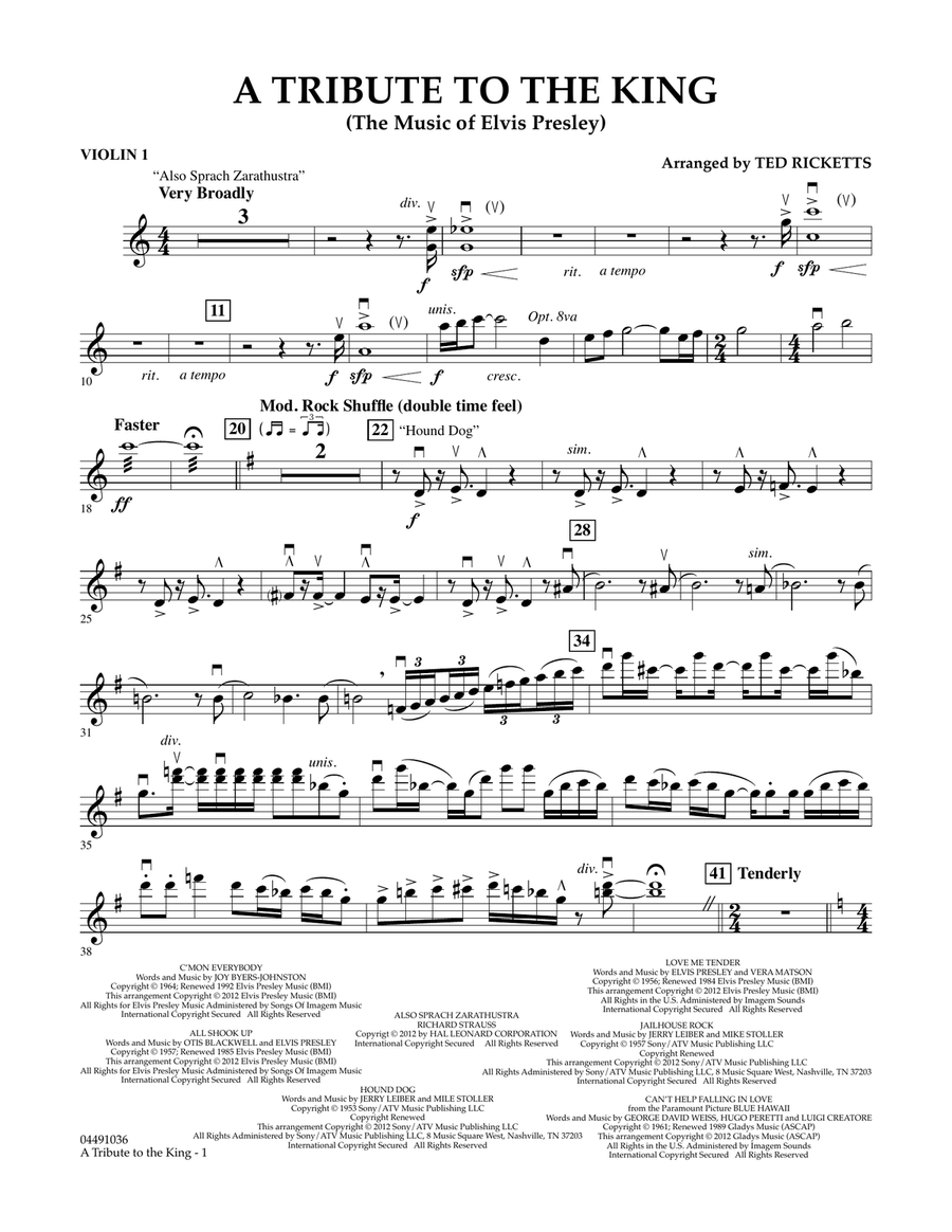 A Tribute To Elvis (arr. Ted Ricketts) - Violin 1