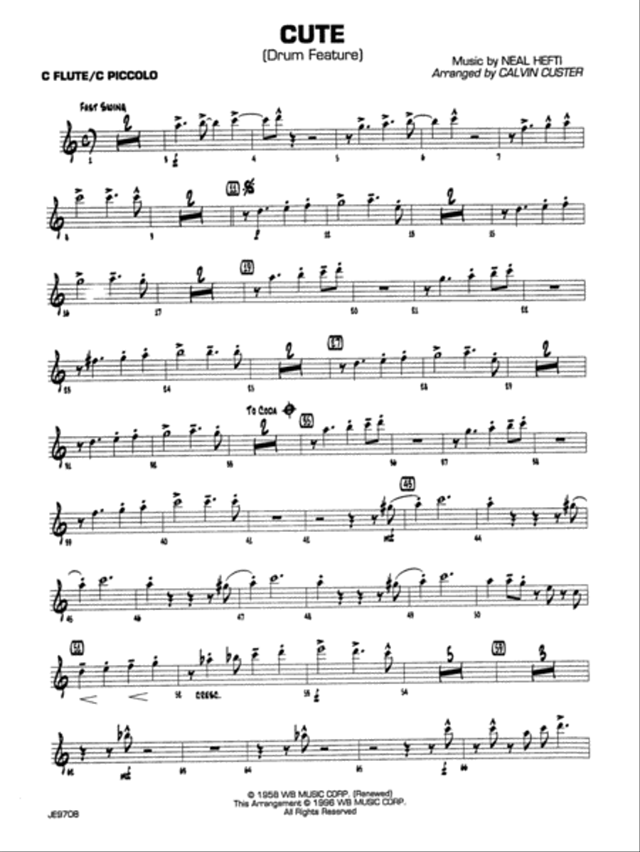 Jazz Ensemble - Digital Download SKU: AX.00-PC-0016817_F1 Flute. Composed by Neal Hefti. Arranged by Peter Blair. Jazz. Part. 2 pages. Alfred Music - Digital Sheet Music #00-PC-0016817_F1. Published by Alfred Music - Digital Sheet Music (AX.00-PC-0016817_F1). UPC: 038081496740.A Basie classic arranged by Neal Hefti, this is a swinger played at 156 BPM. It features a written trumpet 2 solo, nice section solis, and the trumpet 1 range is up to written G on top of the staff. Ideal for the young band, check this one out. (3:15).