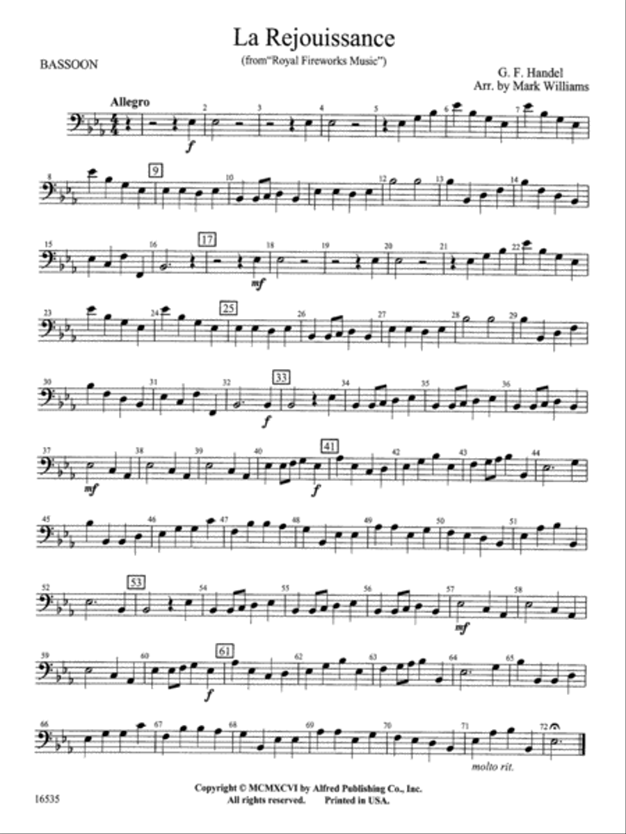 La Rejouissance (from Royal Fireworks Music): Bassoon