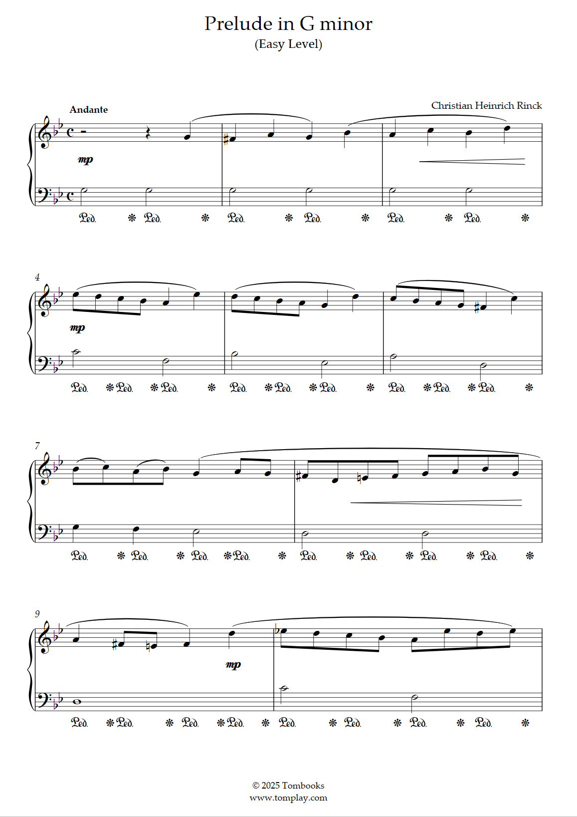 Téléchargez la partition Piano Prélude en sol mineur (niveau facile) de Rinck. Partition p…