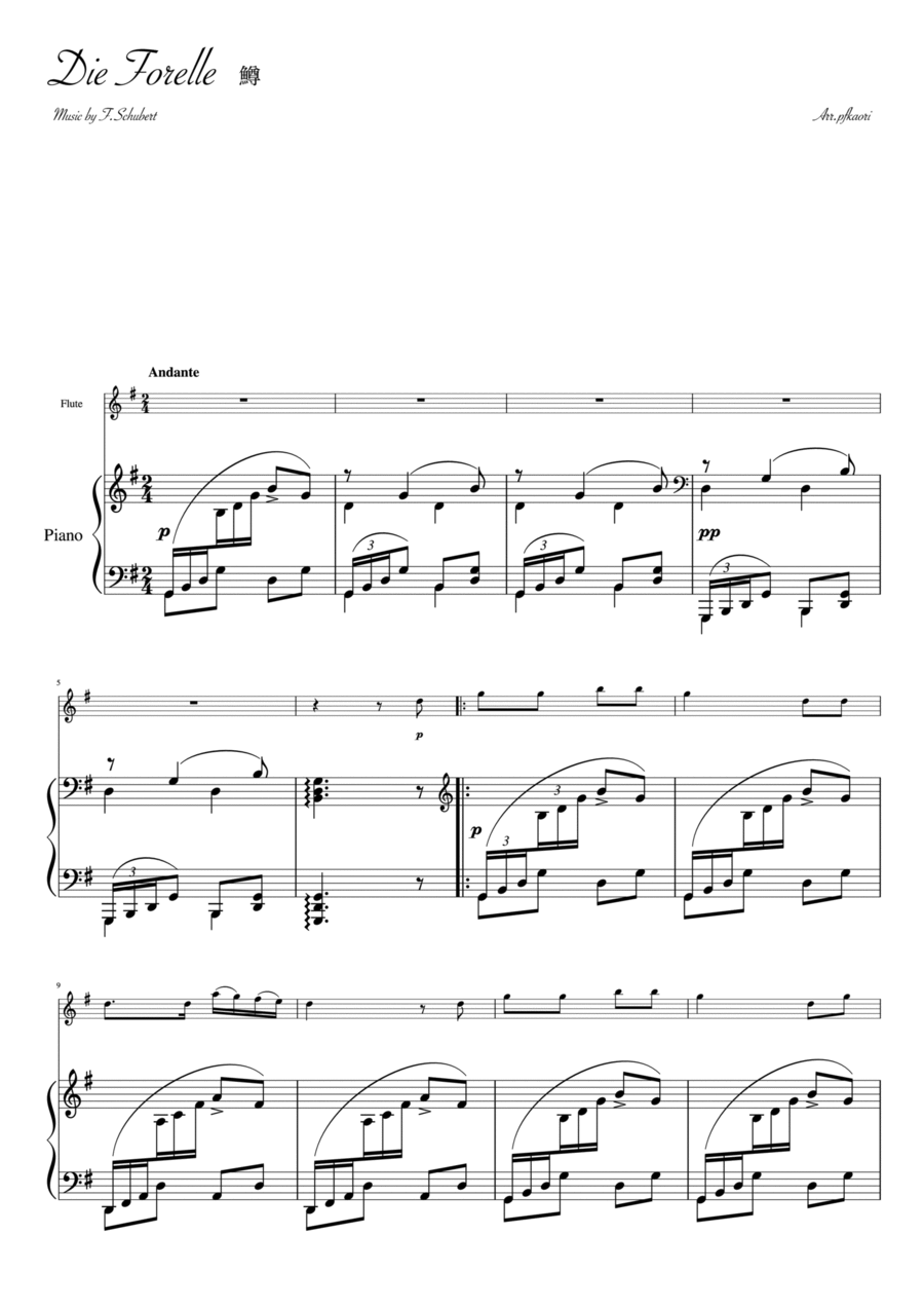 By F.Schubert . By F.Schubert . Arranged by pfkaori. Classical. Score and part. 5 pages. Pfkaorimusic #832130. Published by pfkaorimusic