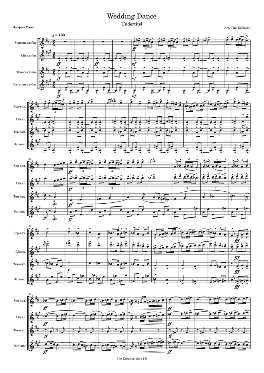Saxophone Quartet,Woodwind Ensemble Alto Saxophone,Baritone Saxophone,Soprano Saxophone,Tenor Saxophone - Level 3 - Digital Download SKU: A0.1348136 By Kumiko. By Joe Hisaishi. Arranged by Glauco Fernandes. Chamber,Film/TV,Wedding. 24 pages. Glauco Fernandes #932952. Published by Glauco Fernandes (A0.1348136). Title: Uncover the Magic of The Merry-Go-Round of Life from Howl's Moving Castle with Our Exclusive Sheet Music for Saxophone Quartet with PianoExplore the beauty of the Howl's Moving Castle soundtrack with the exclusive sheet music for The Merry-Go-Round of Life by composer Joe Hisaishi. Available on Netflix, where the film is streaming, this sheet music is specially arranged for a saxophone quartet with piano, providing a comprehensive interpretation. Perfect for musicians, students, and teachers, it offers engaging challenges and accessibility.Versatility for Special Events:In addition to enhancing your musical practices, this sheet music is ideal for performances at special events, such as weddings, providing a magical and memorable atmosphere. Its adaptation for a saxophone quartet with piano offers the flexibility needed to enchant audiences on various occasions.Get your sheet music now and bring the magic of the music to your performances, connecting with the thrilling story of Howl's Moving Castle.To explore more quality sheet music, consider searching for Glauco Fernandes on the website's search bar. Contact: glaucofernandes.arrangements@gmail.com.