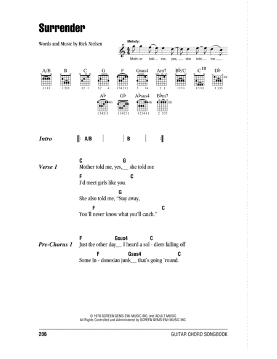 For piano, voice and guitar (chords only)