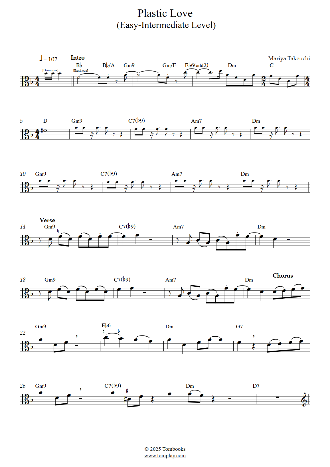 Téléchargez la partition Alto Plastic Love (niveau facile/intermédiaire) de Mariya Takeuch…