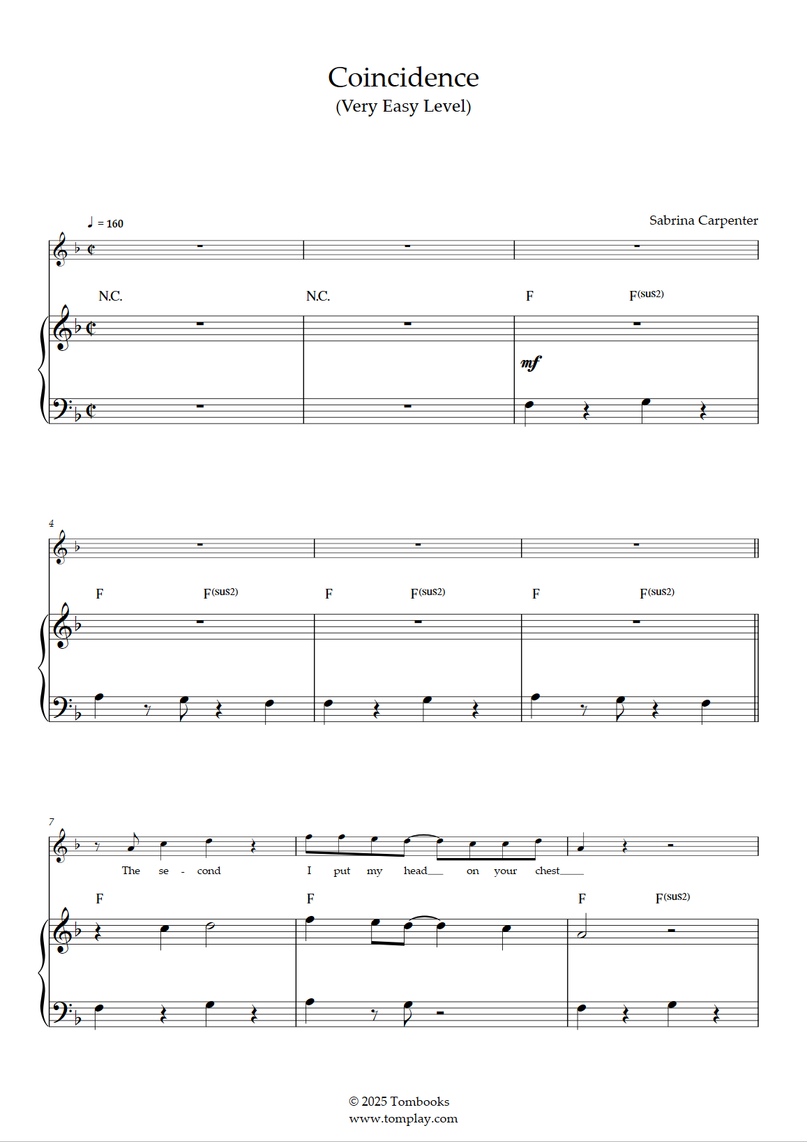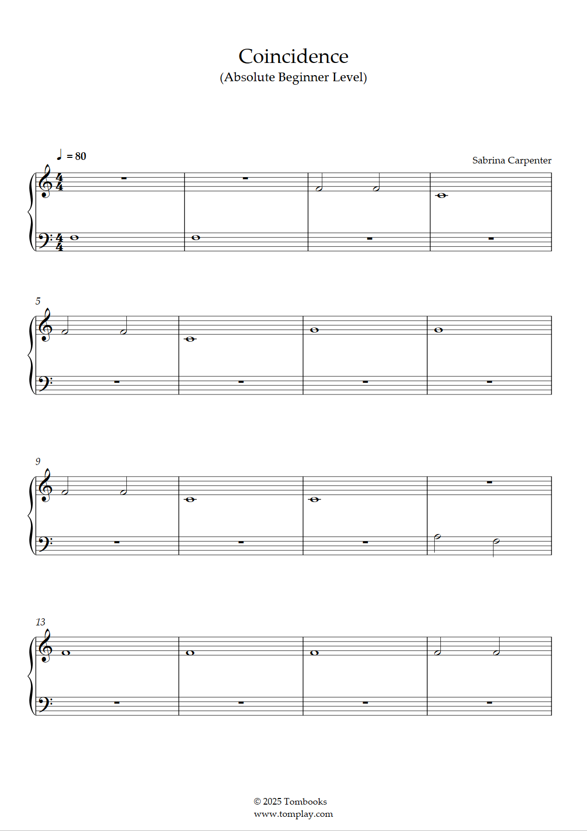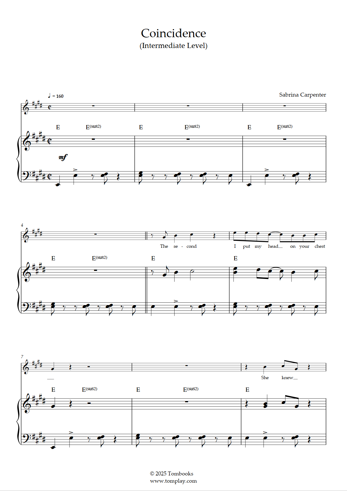 Sabrina Carpenter : Coincidence (niveau intermédiaire, piano solo)