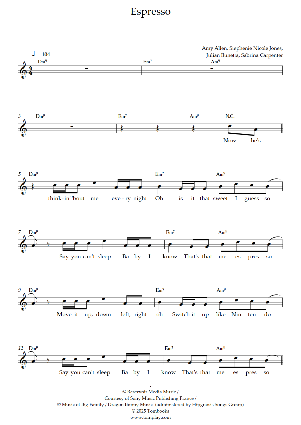 Téléchargez la partition Chant Espresso de Sabrina Carpenter. Partition pour Avec accompag…