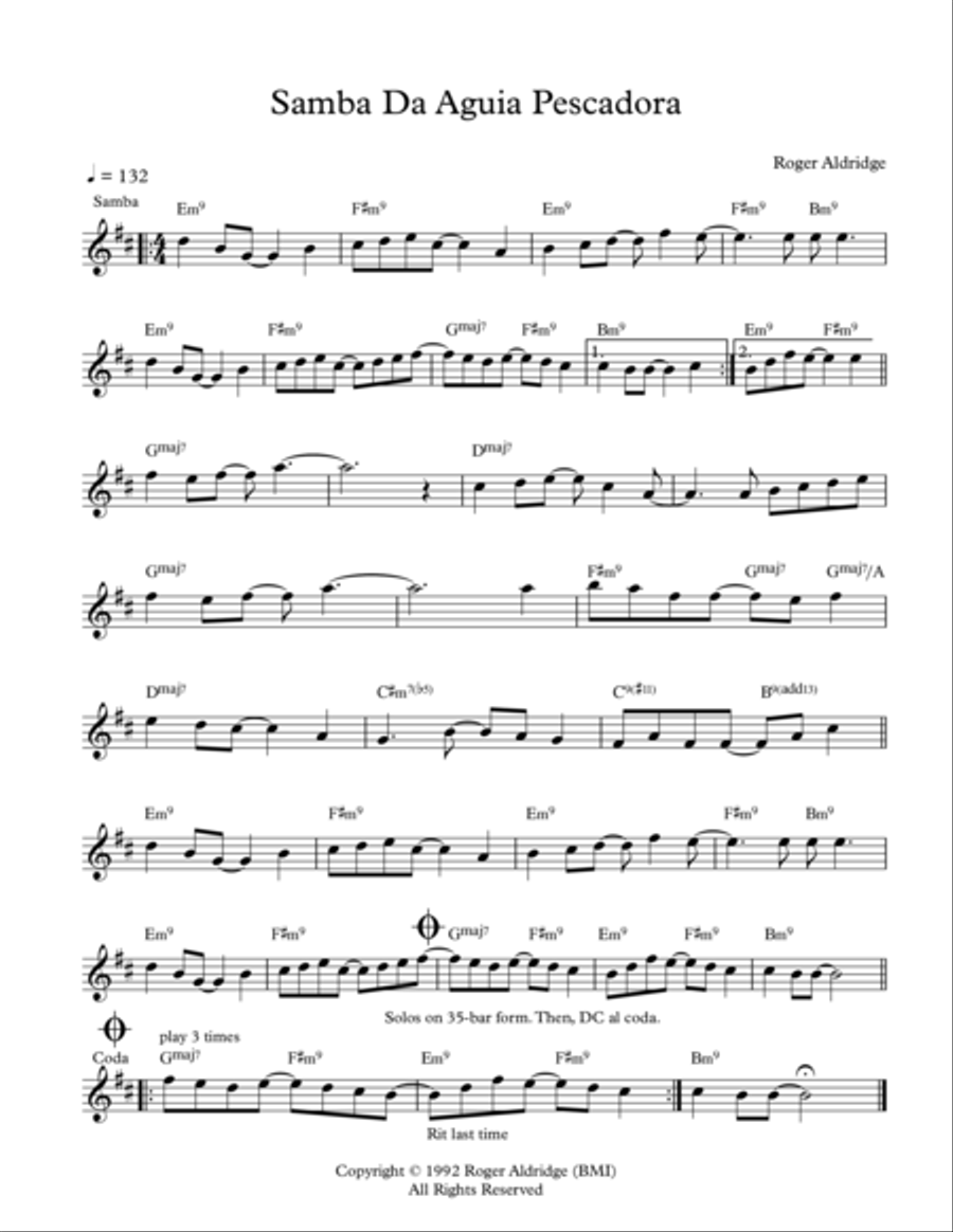 Composed by Roger Aldridge. Jazz, Afro-Brazilian. Lead Sheet, Sheet Music Single. 1 pages. Published by Roger Aldridge (S0.80389). - Lead Sheet,Sheet Music Single - Jazz,Afro-Brazilian - Roger Aldridge