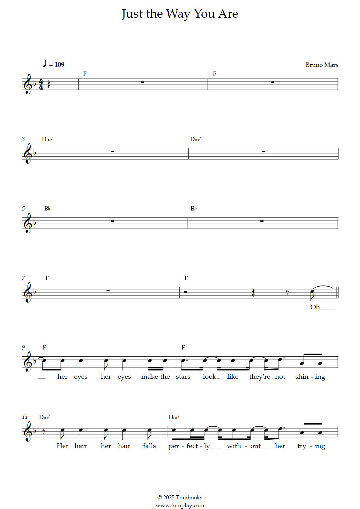 Téléchargez la partition Chant Just the Way You Are de Bruno Mars. Partition pour Avec acc…