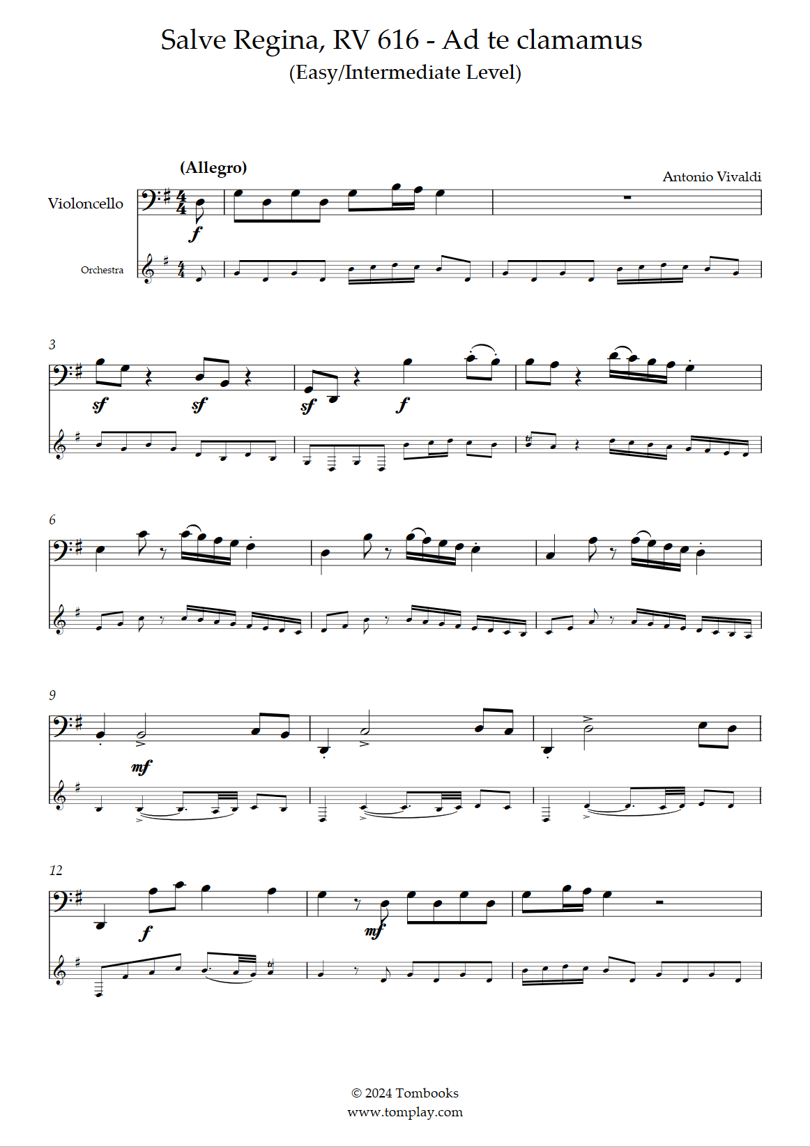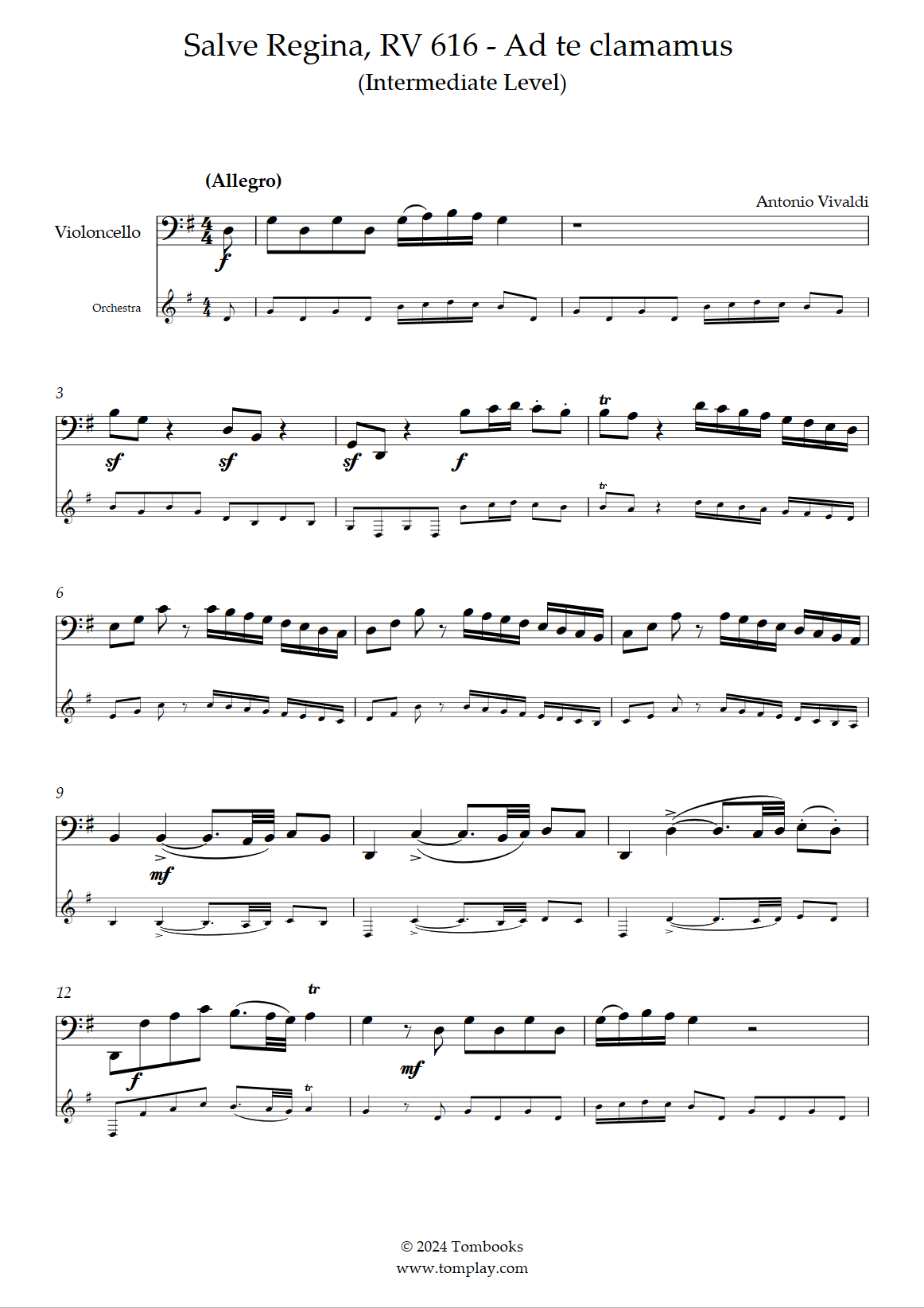 Téléchargez la partition Violoncelle Salve Regina, RV 616 - Ad te clamamus (niveau intermé…