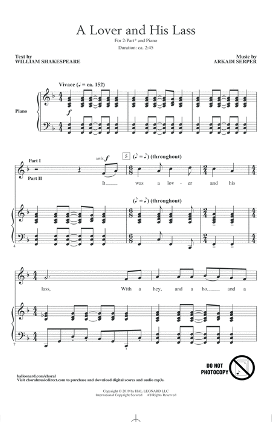 Arkadi Serper: A Lover And His Lass sheet music to print instantly for choir (2-Part)