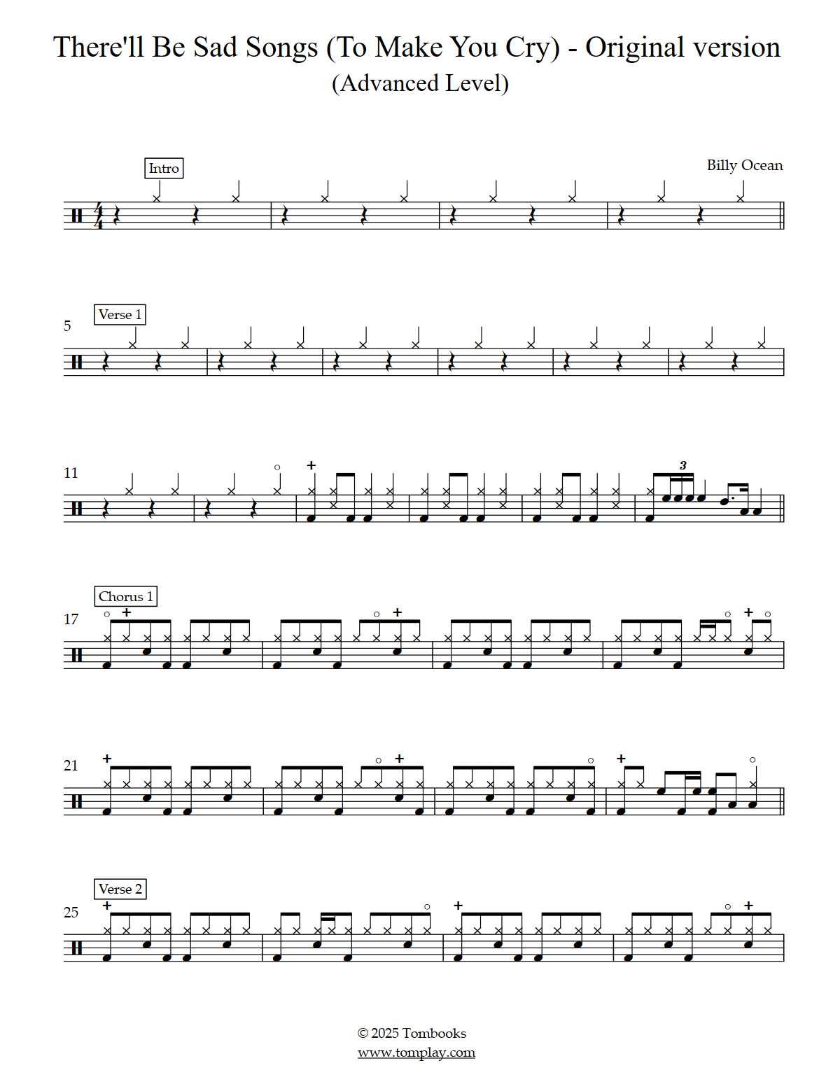 Téléchargez la partition Batterie There'll Be Sad Songs (To Make You Cry) - Version origin…