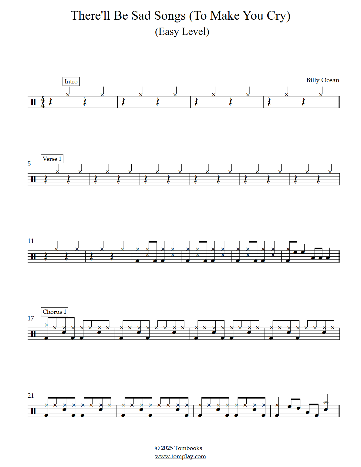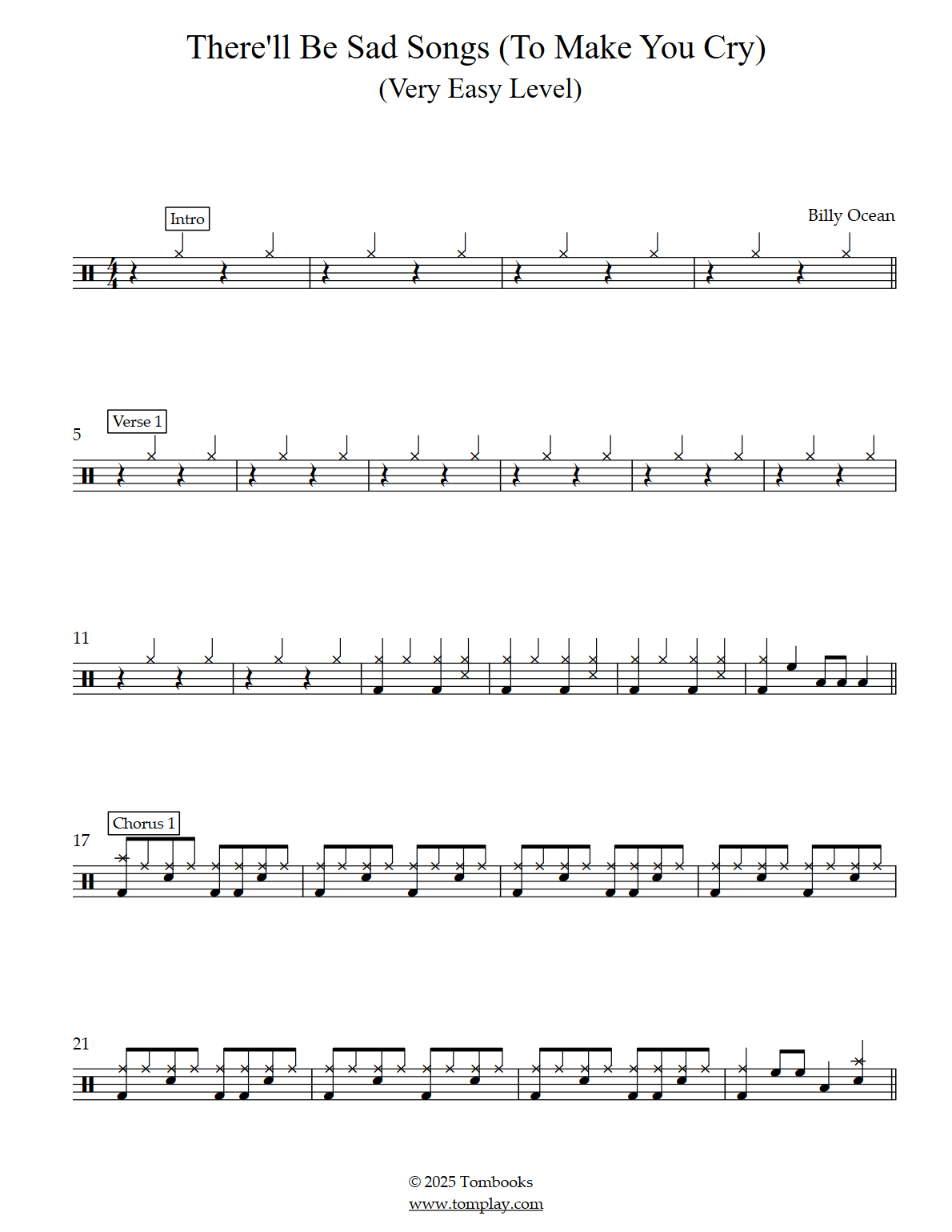 Téléchargez la partition Batterie There'll Be Sad Songs (To Make You Cry) (niveau facile) …