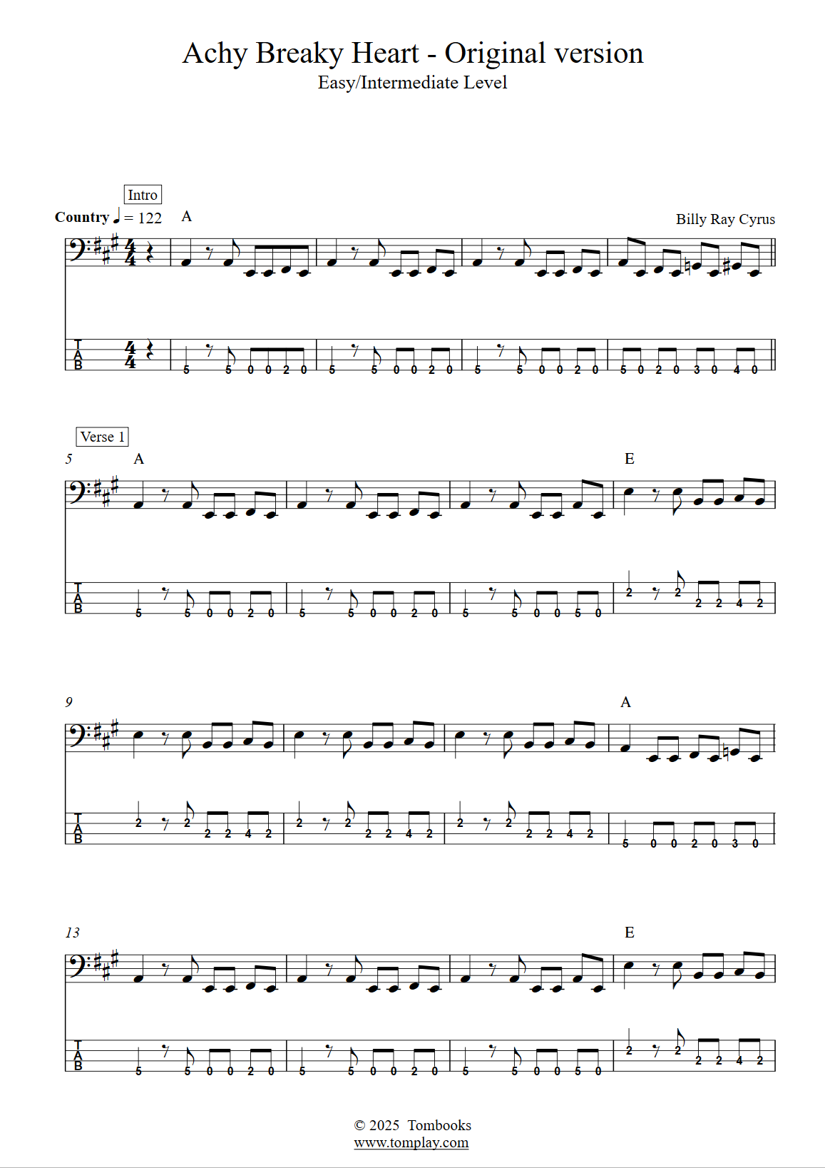 By Billy Ray Cyrus. Country; Pop. Bass TAB. 4 pages. Published by Hal Leonard - Digital Sheet Music