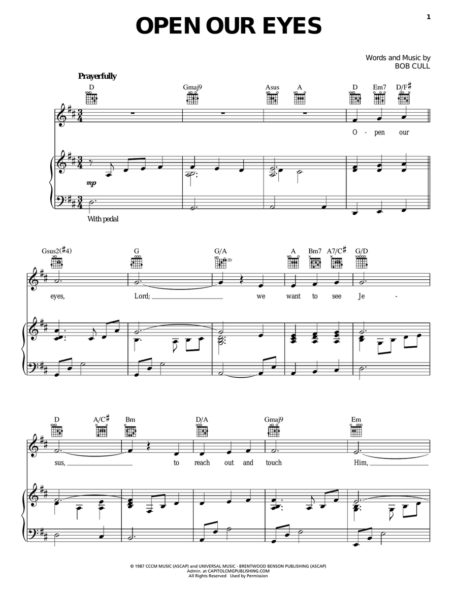 Bob Cull: Open Our Eyes sheet music to print instantly for piano solo