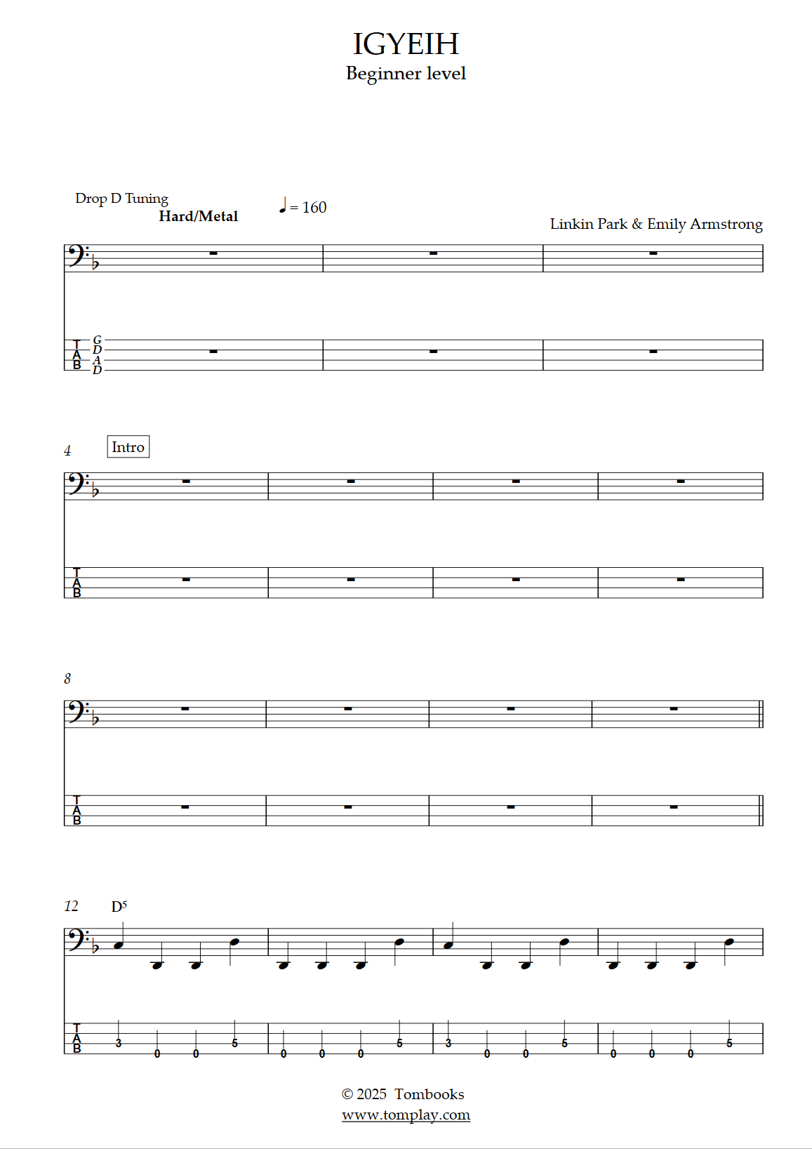 Téléchargez la tablature et la partition Basse IGYEIH (niveau débutant) de Emily Armstrong…