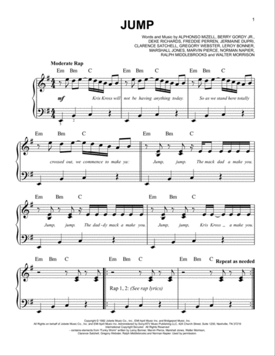 Kriss Kross: Jump sheet music to print instantly for piano solo
