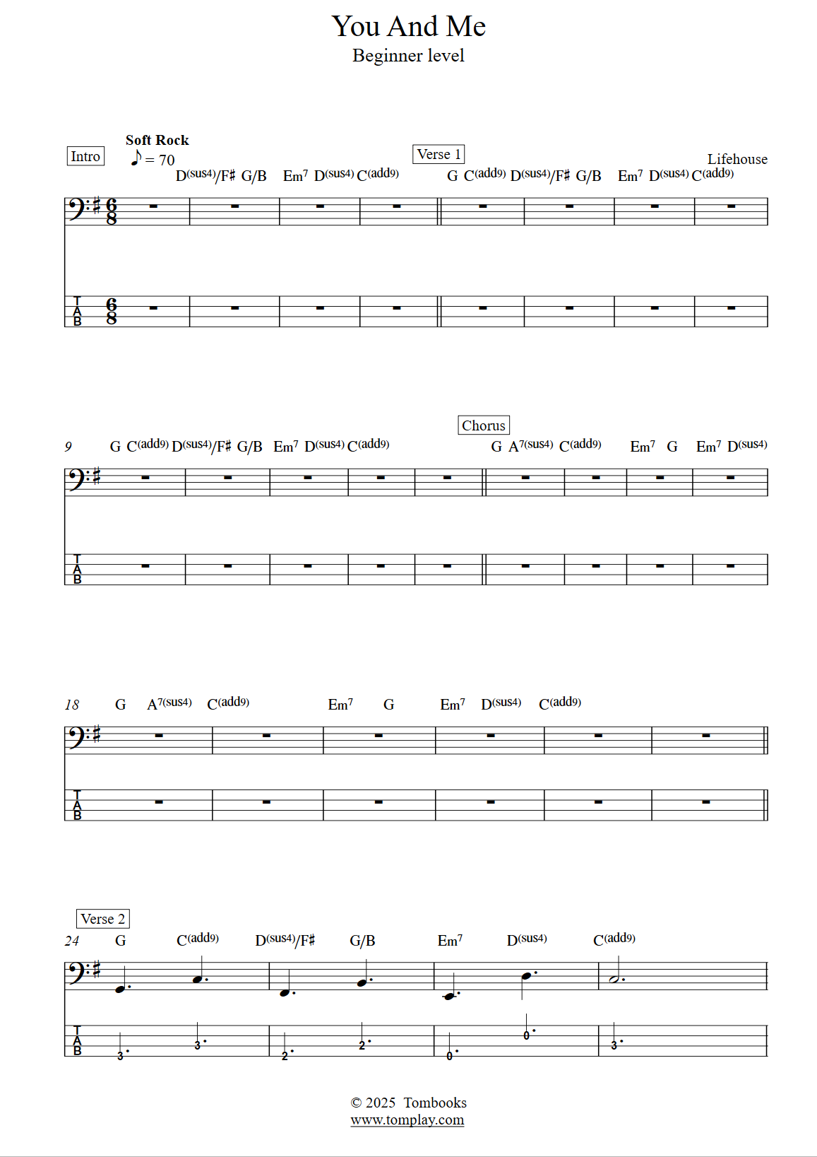 Téléchargez la tablature et la partition Basse You and Me (niveau débutant) de Lifehouse. …