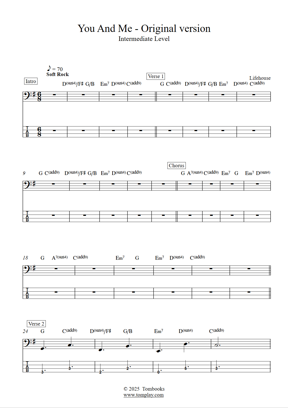 Téléchargez la tablature et la partition Basse You and Me - Version originale (niveau inte…