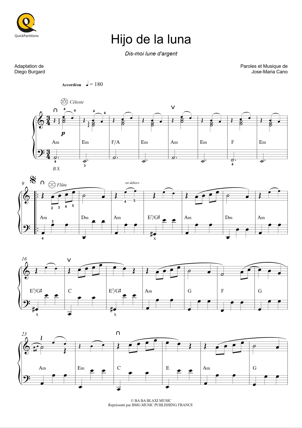 Téléchargez la partition Flûte Hijo de la Luna (niveau intermédiaire) de Mecano. Partition…