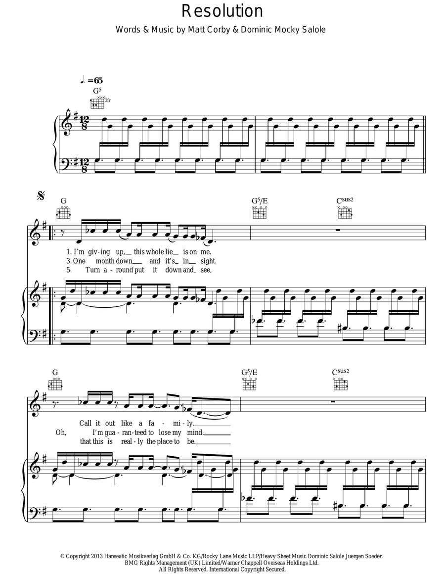 Resolution Sheet Music by Matt Corby - Piano/Vocal/Guitar