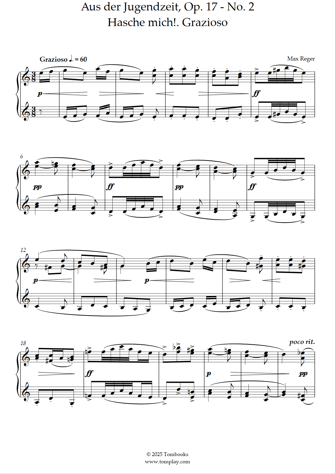 Max Reger : Aus der Jugendzeit, Op. 17 - N° 2 Hasche mich!( Attrappe-moi!) Grazioso