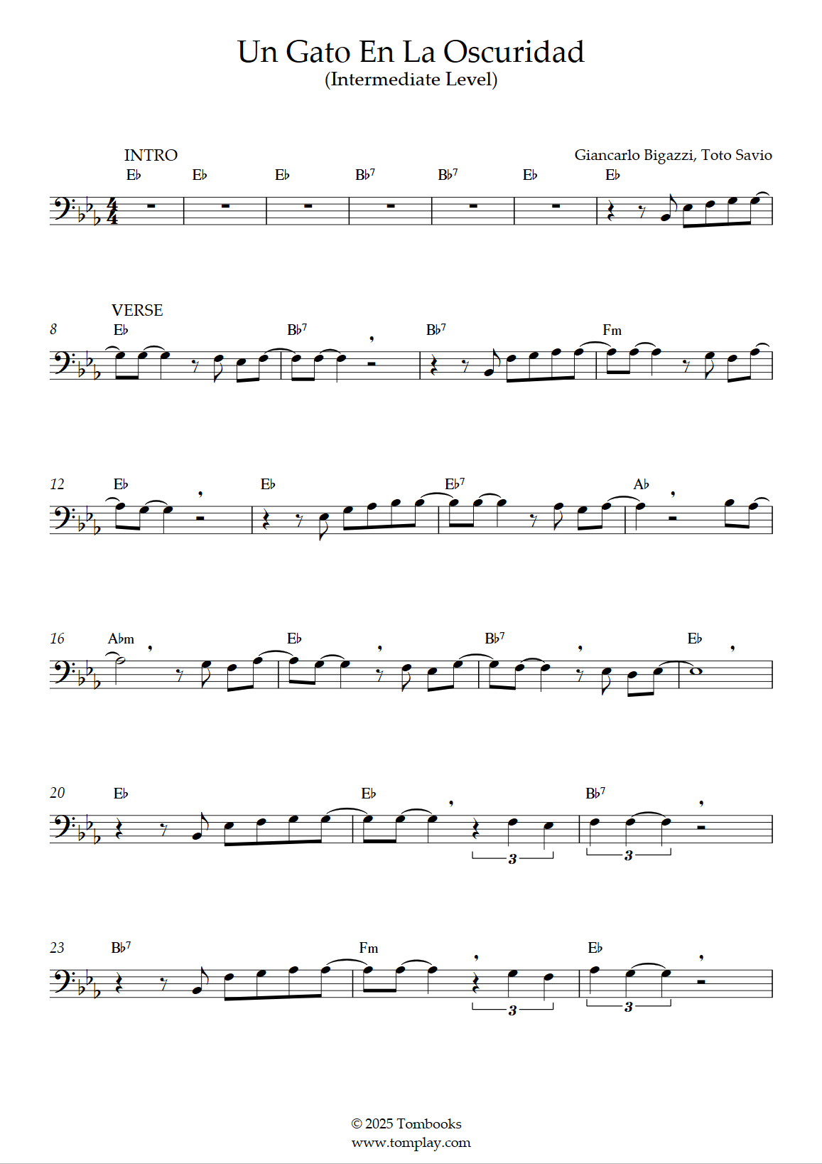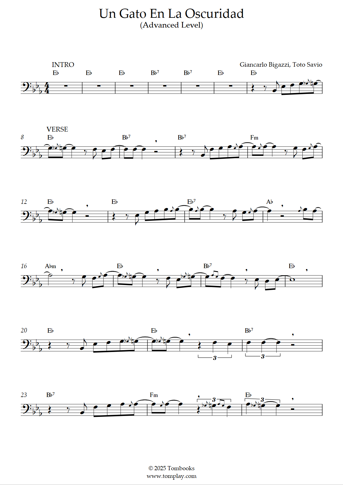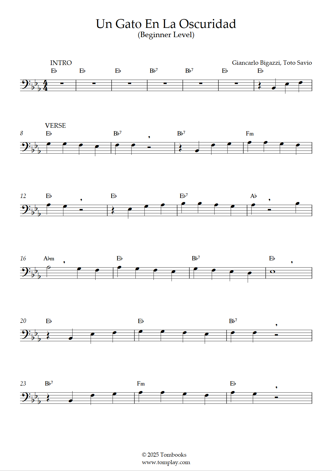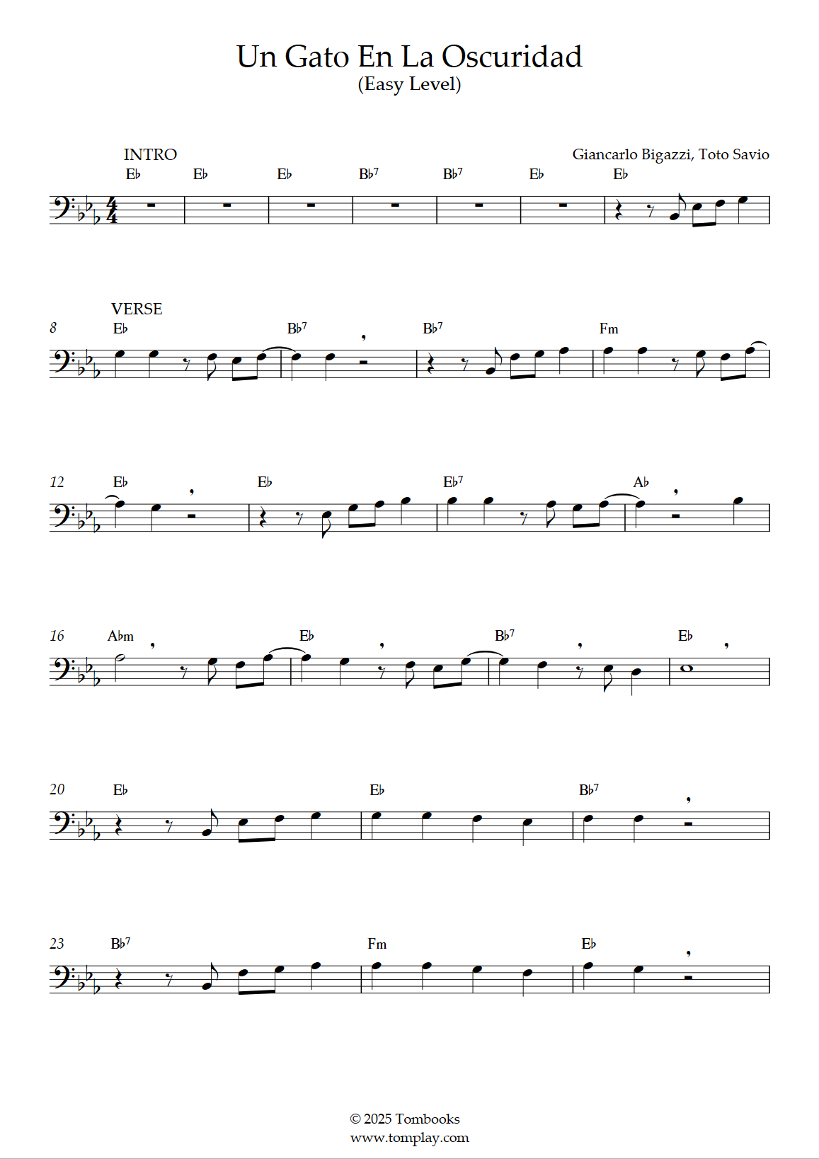 Téléchargez la partition Trombone Un gato en la oscuridad (niveau facile) de Roberto Carlo…