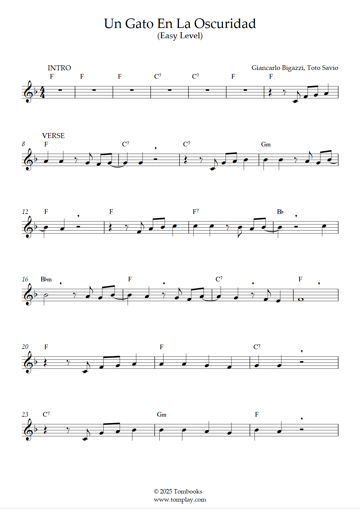 Roberto Carlos : Un gato en la oscuridad (niveau facile, sax ténor)