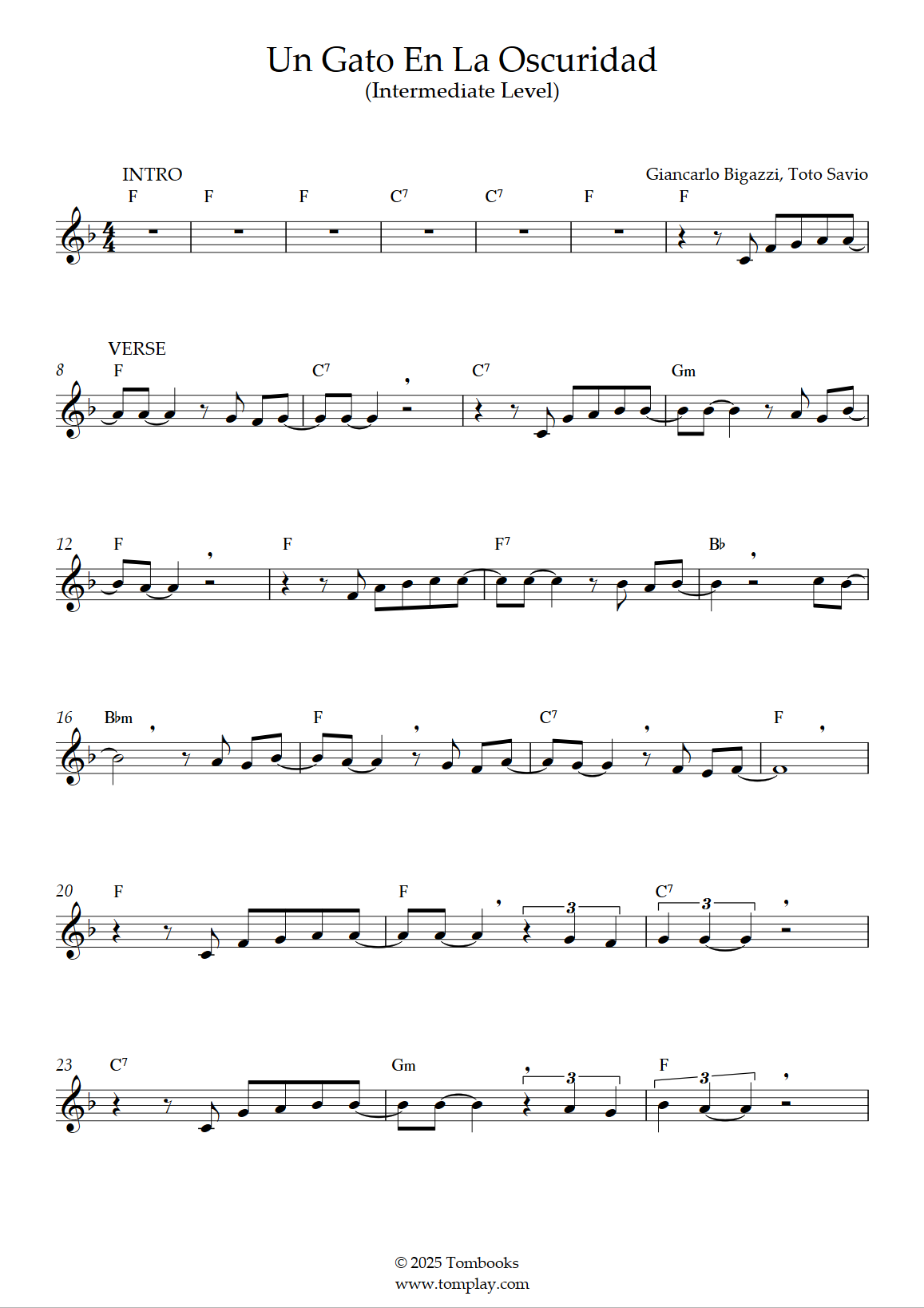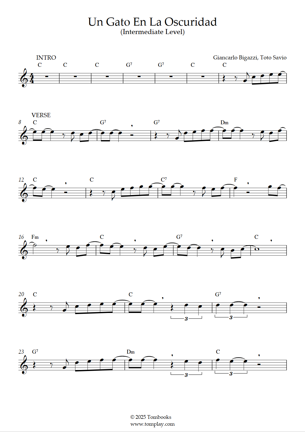 Roberto Carlos : Un gato en la oscuridad (niveau intermédiaire, sax alto)