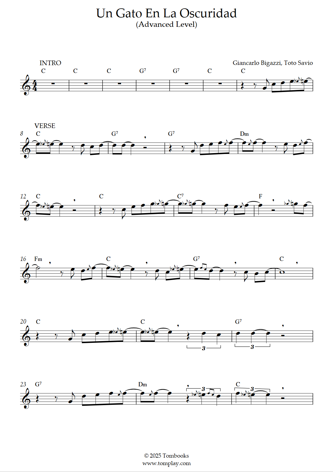 Roberto Carlos : Un gato en la oscuridad (niveau difficile, sax alto)