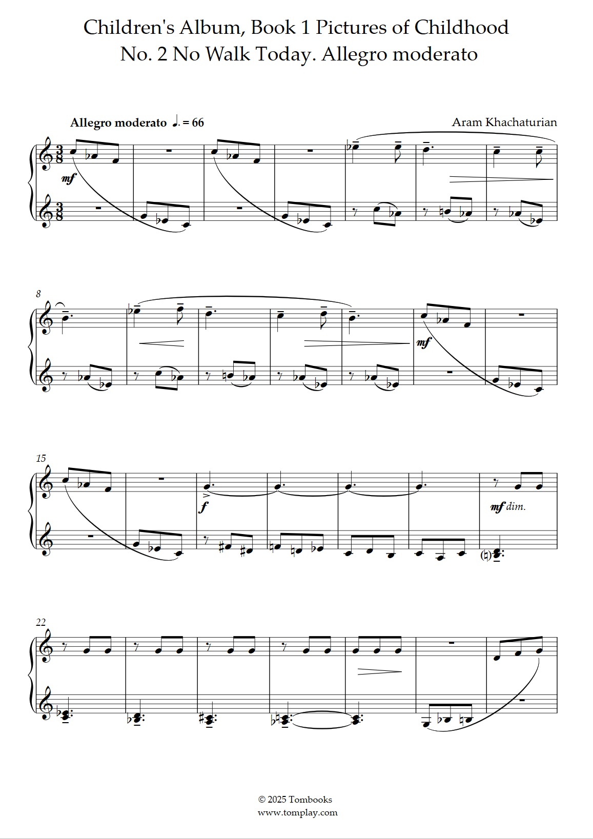 Khatchatourian : Album pour enfants, Livre I - N° 2 Pas de promenade aujourd'hui. Allegro moderato
