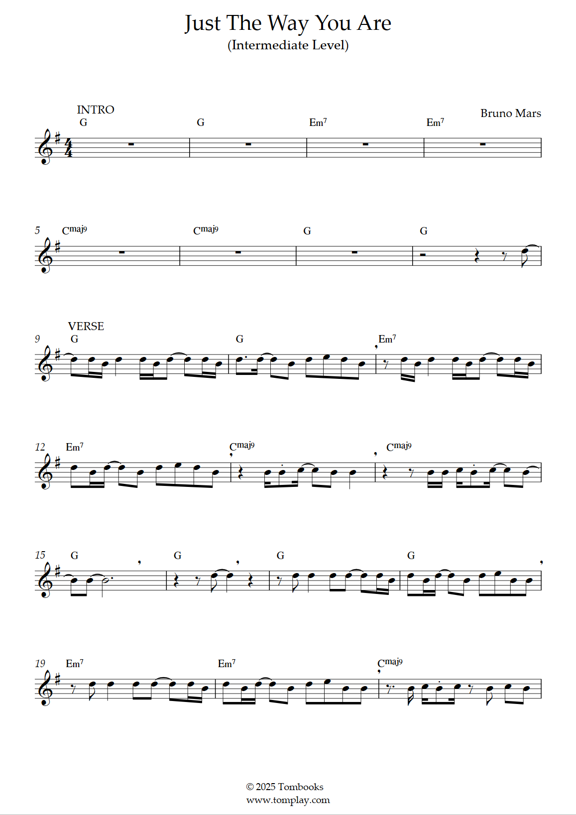 Téléchargez la partition Saxophone Just the Way You Are (niveau intermédiaire, sax ténor) …