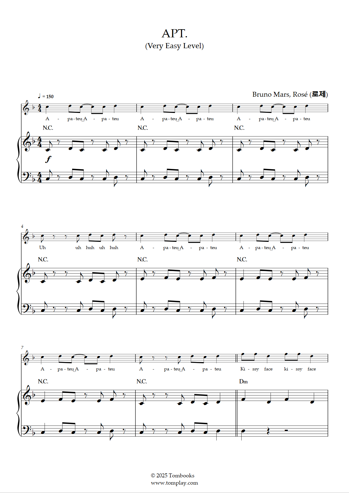 Téléchargez la partition Piano APT. (niveau très facile, piano solo) de Bruno Mars. Partit…
