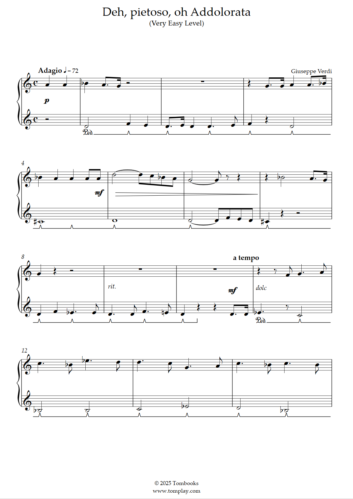 Verdi : Deh, pietoso, oh Addolorata (niveau très facile, piano solo)