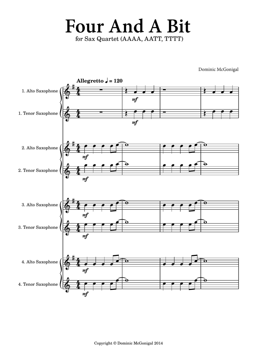 Saxophone Ensemble,Woodwind Ensemble Alto Saxophone,Baritone Saxophone,Soprano Saxophone,Tenor Saxophone - Level 4 - Digital Download SKU: A0.1266937 Composed by Wolfgang Amadeus Mozart. Arranged by Katie Brown. Chamber,Classical. 53 pages. Katiesaxbrown #859581. Published by katiesaxbrown (A0.1266937). An arrangement pf the first movement of Mozart's Serenade a 8 ('Nacht Musique') for saxophone octet (1x Soprano, 4x Alto, 2x Tenor, 1x Baritone). This was originally composed for wind octet (2 oboes, 2 clarinets, 2 French horns and 2 bassoons). Score and parts, 53 pages.