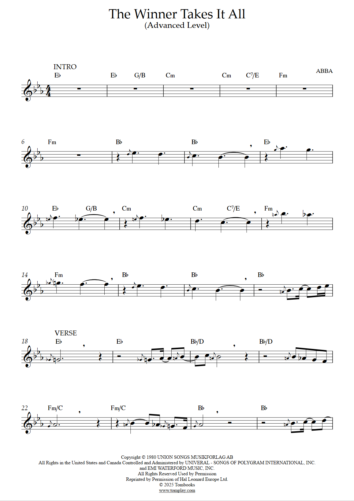 Téléchargez la partition Piano The Winner Takes It All (niveau difficile, pi…
