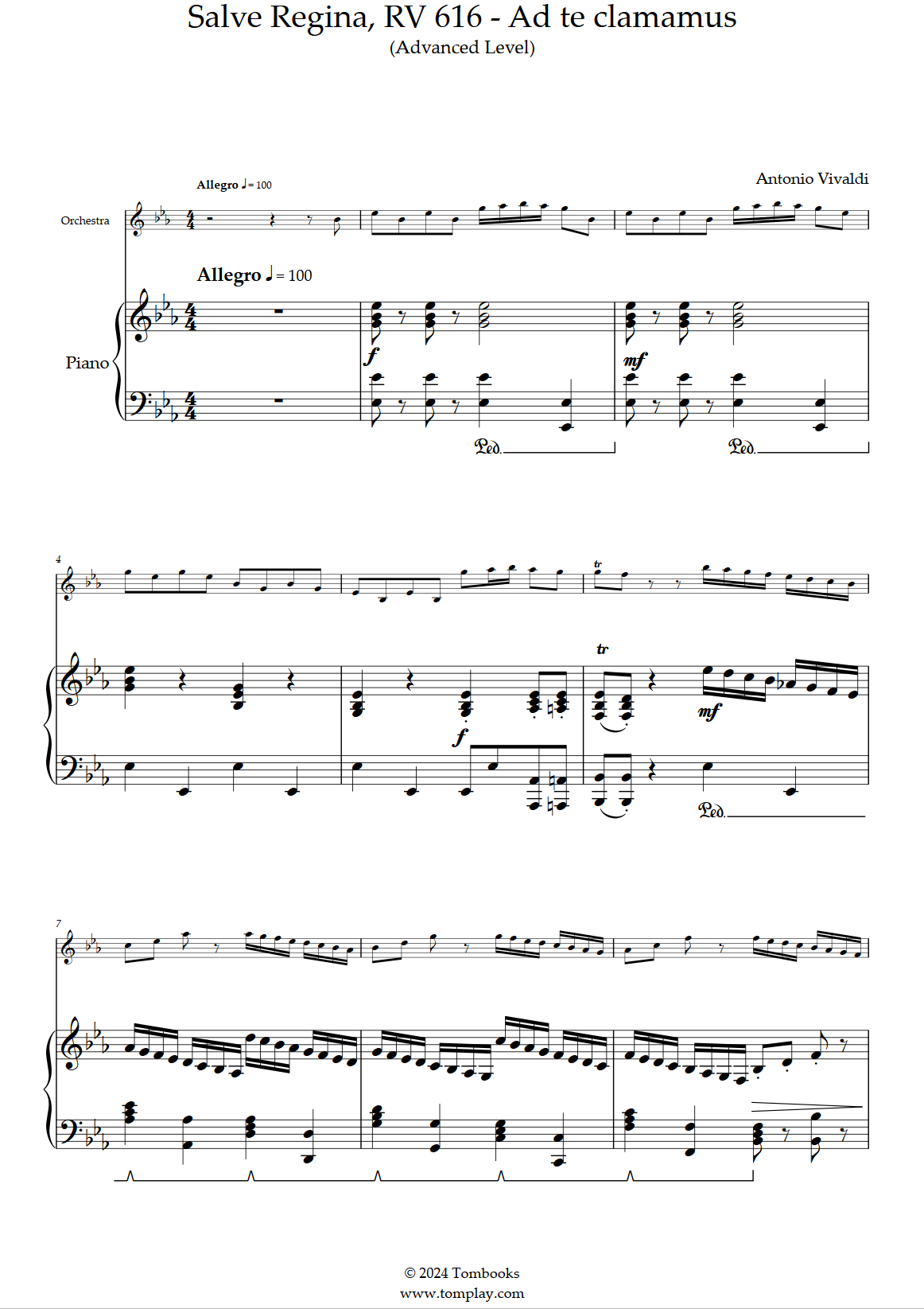 Téléchargez la partition Piano Salve Regina, RV 616 - Ad te clamamus (niveau difficile, av…