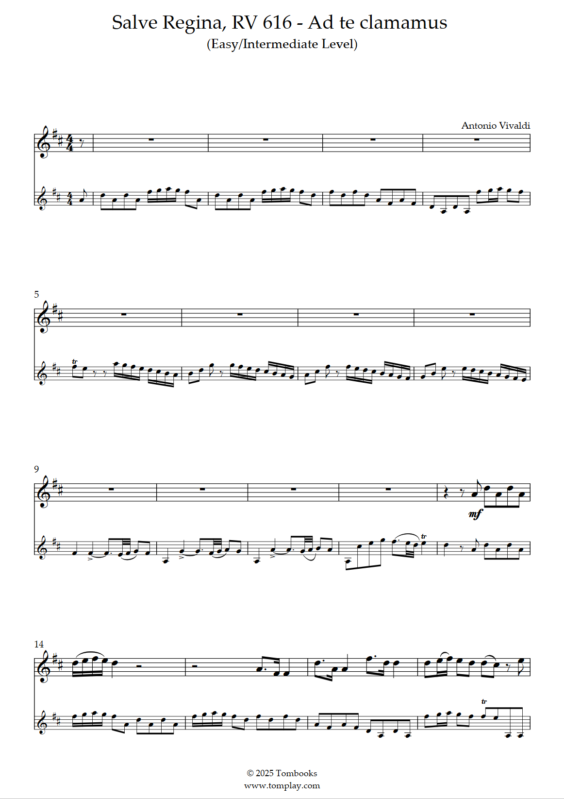Vivaldi : Salve Regina, RV 616 - Ad te clamamus (niveau facile, sax soprano)