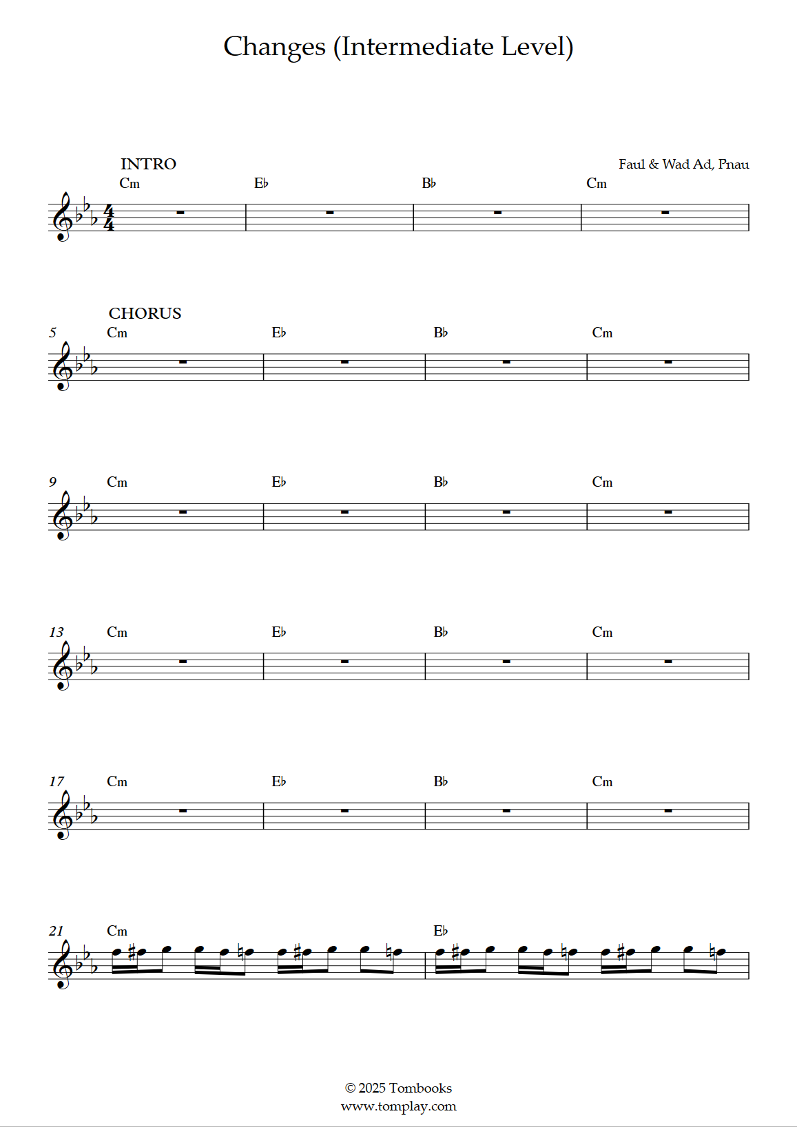 Téléchargez la partition Saxophone Changes (niveau intermédiaire, sax alto) de Faul & Wad …