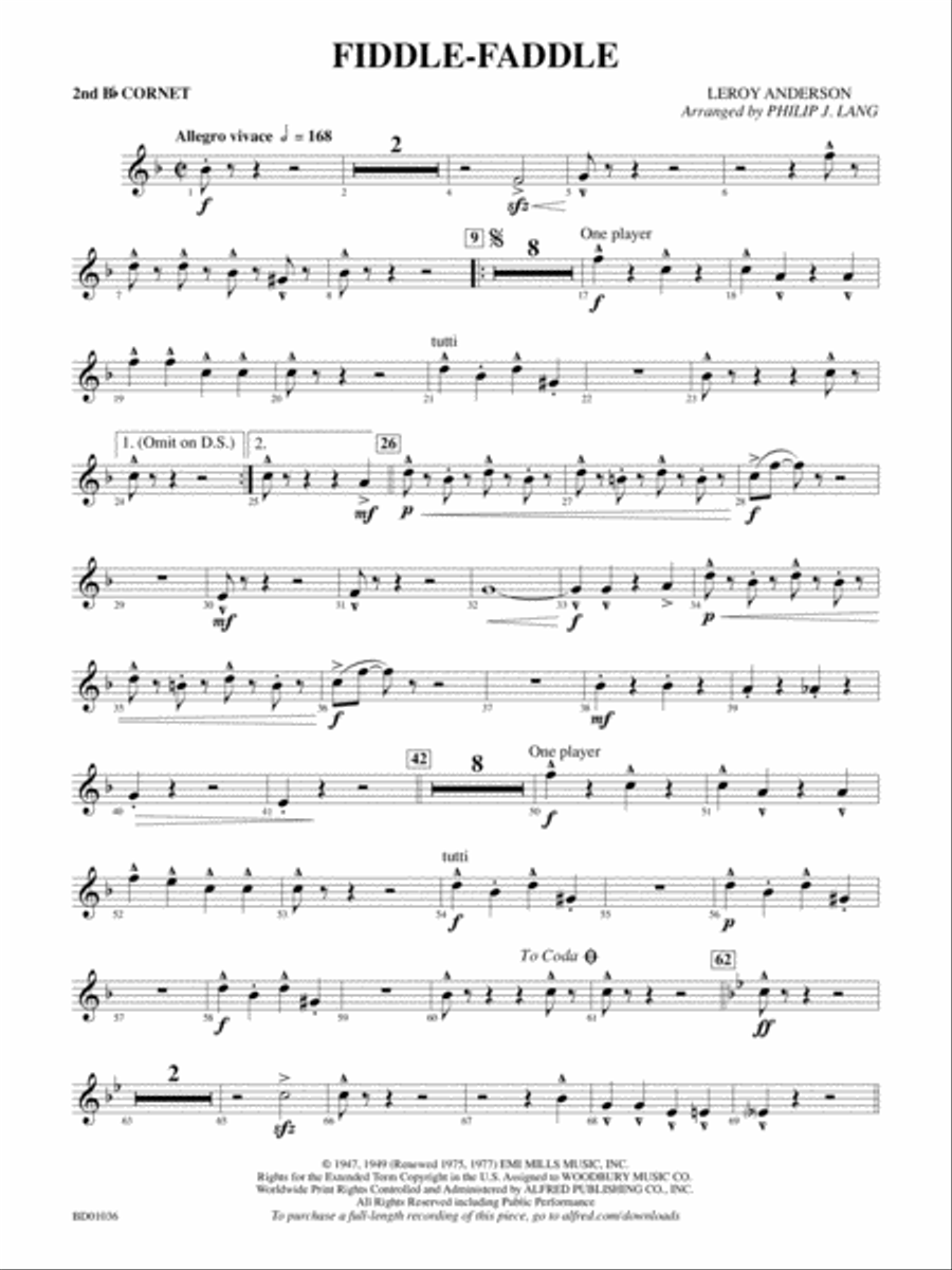 By Leroy Anderson (1908-1975). Arranged by Philip J. Lang. For Concert Band. Instructional. Part. 2 pages. Published by Alfred Music. Digital Sheet Music