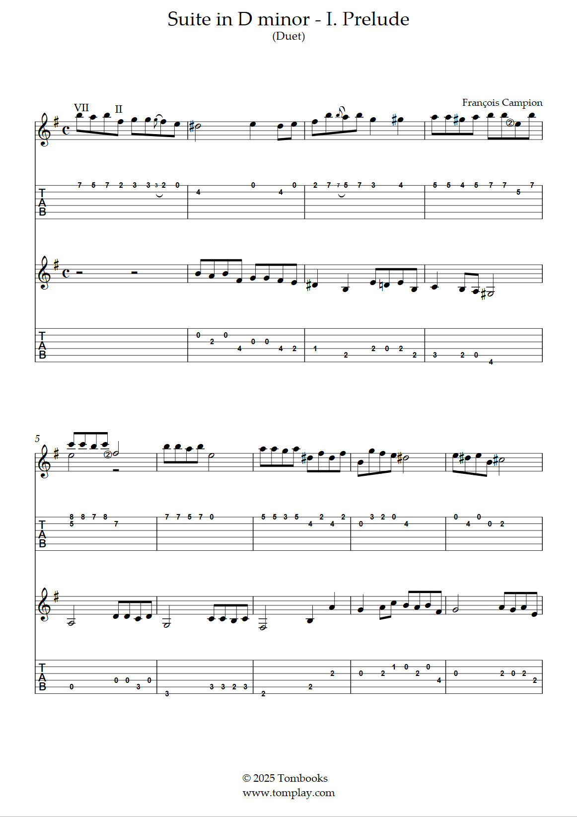 Téléchargez la tablature et la partition Guitare Suite en ré mineur - I. Prelude (Duo) de …