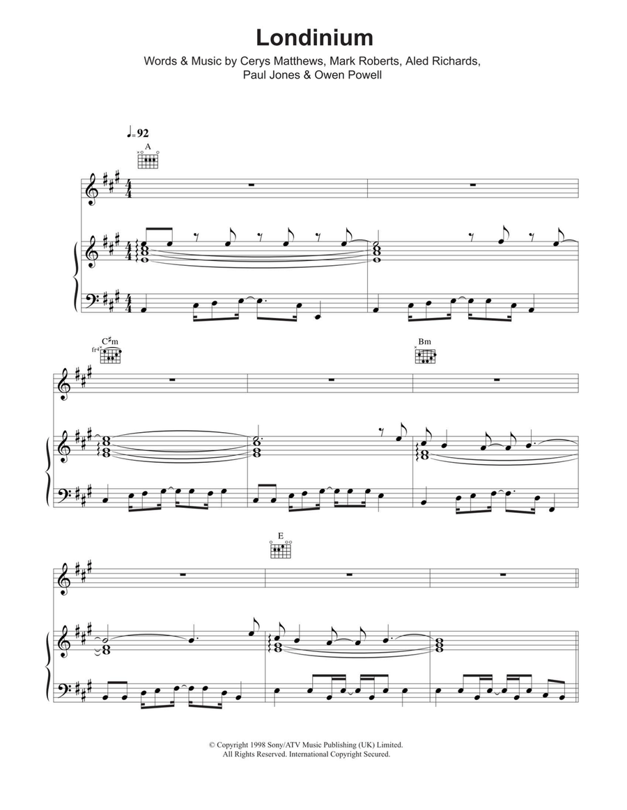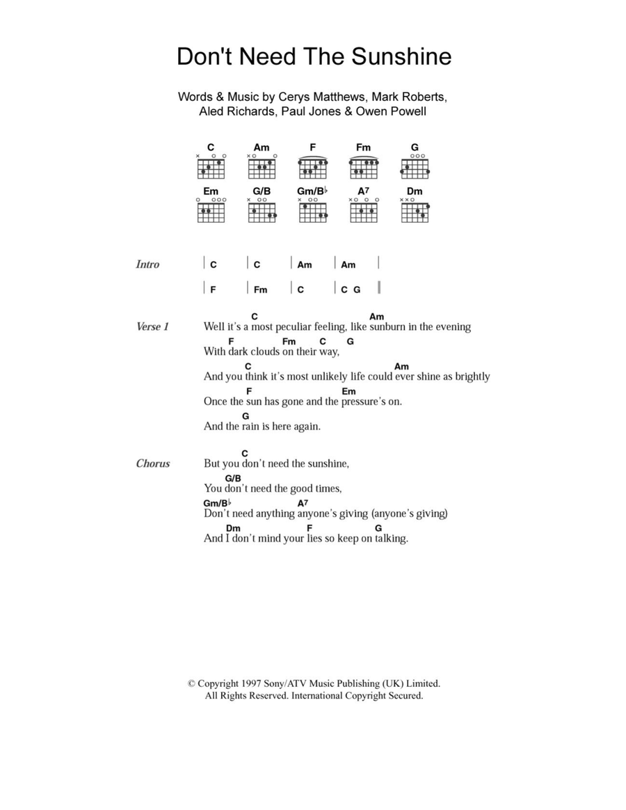 By Catatonia. Pop; Rock. Piano/Vocal/Guitar. 7 pages. Published by Hal Leonard - Digital Sheet Music