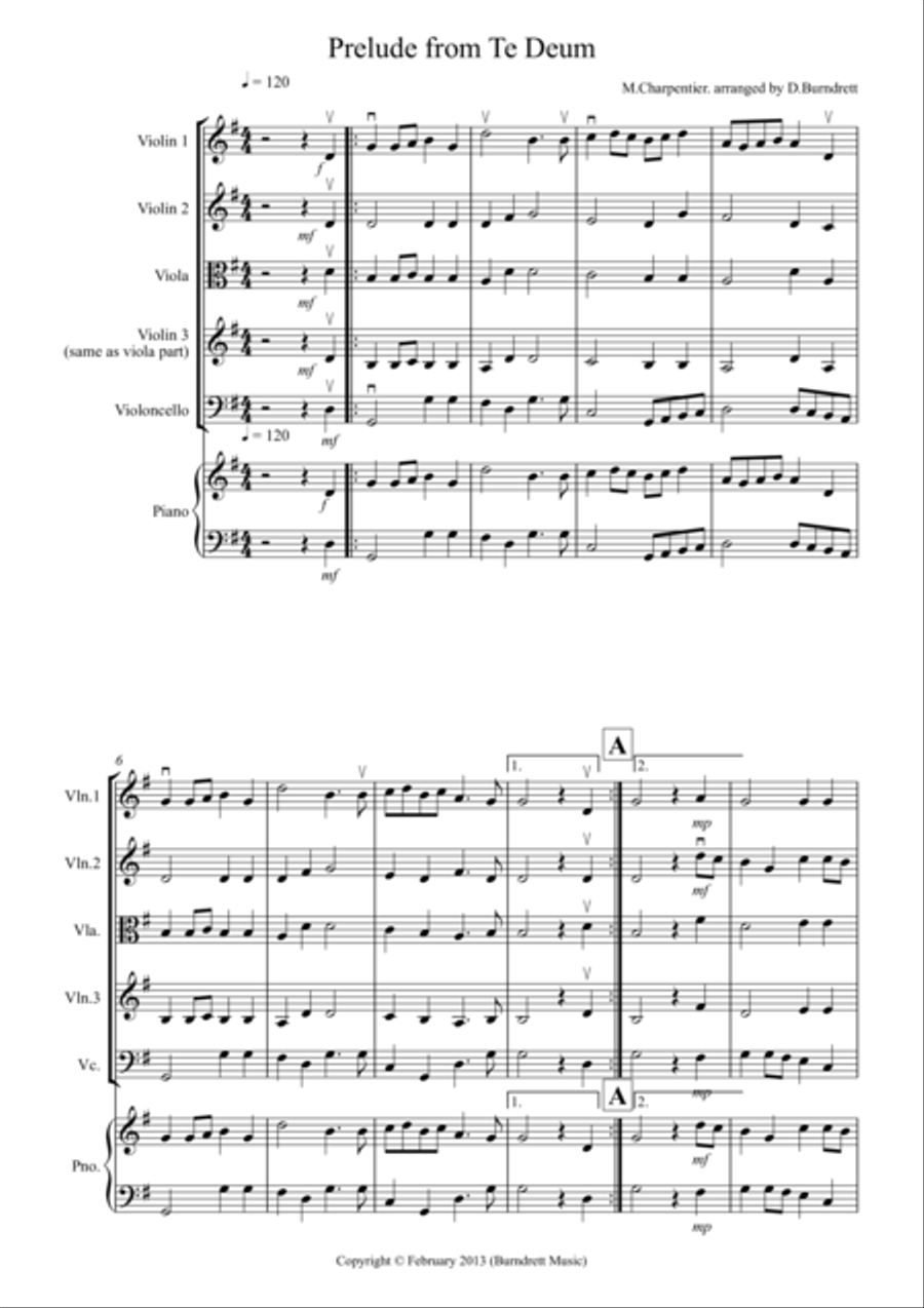 By M.Charpentier. Arranged by D.Burndrett. For String Quartet. Baroque Period. Easy/Beginner. Set of Parts, Score. Published by David Burndrett
